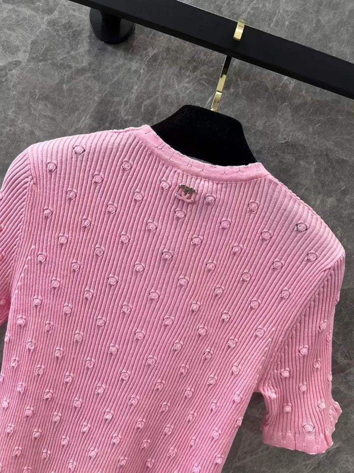 25ss Frühjahrsneuheit: Klassisches dreidimensionales gehäkeltes Kurzarm-Strickoberteil mit Tupfenmuster. Ein Must-have für hellhäutige und reiche Mädchen! Vielseitig und schmal geschnitten, superschlank! Originale Spezialbeschläge, Seersucker-Webart, importiertes hochfädiges Garn, super bequeme Textur! Retro-Temperament, modisch und modern! Der Stil lässt Sie schlank aussehen! Elegant und modern für Prominente!
