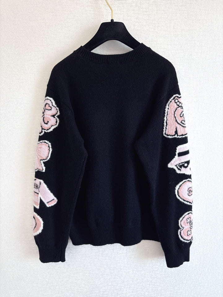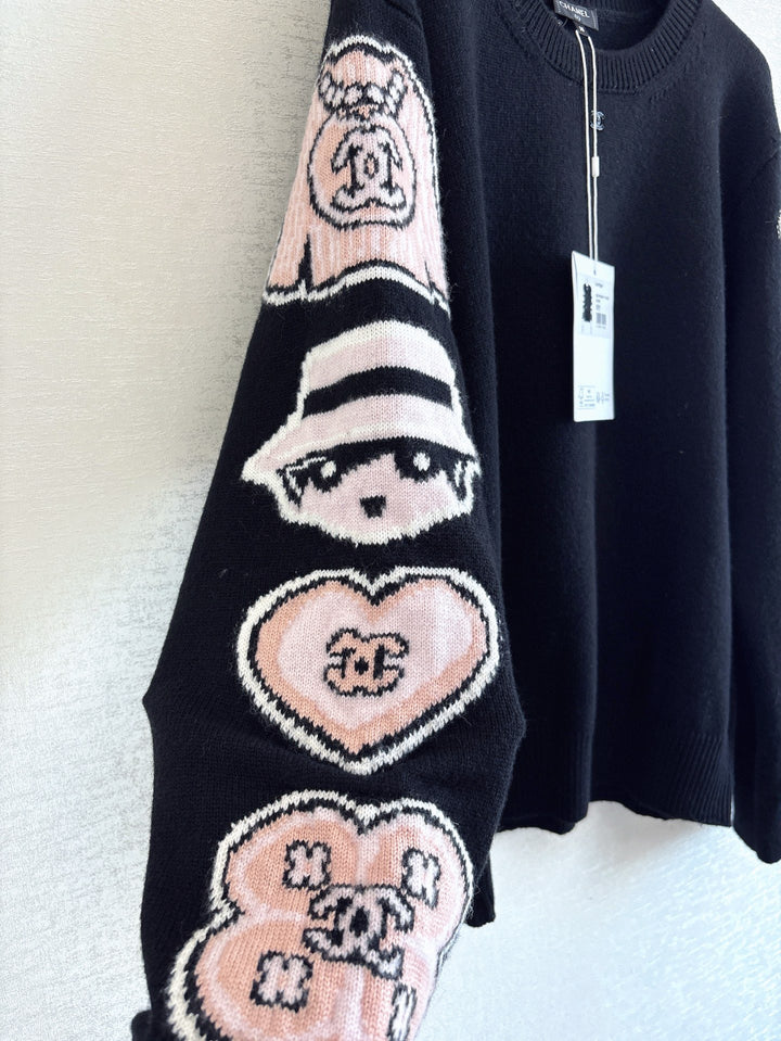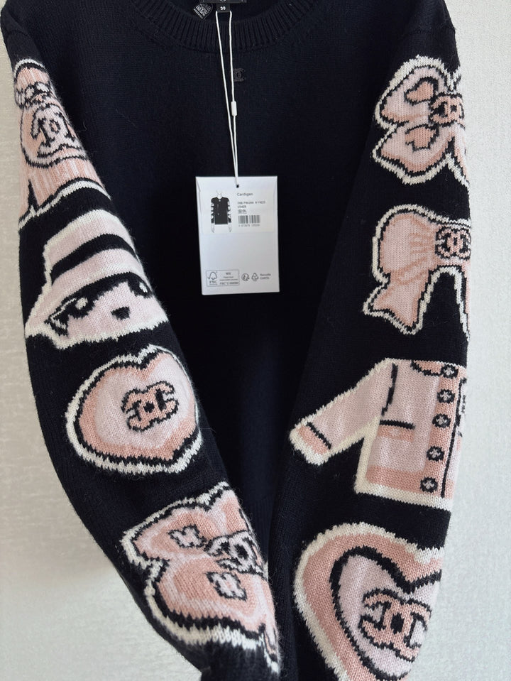 Gleichzeitig veröffentlicht, exklusive, originelle Eins-zu-eins-Anpassung, 𝚓暴𝚗𝚗𝚒暴 Cartoon-Puppe, Kaschmir, Rundhalsausschnitt, lange Ärmel ➕ große 𝚅-Strickjacke