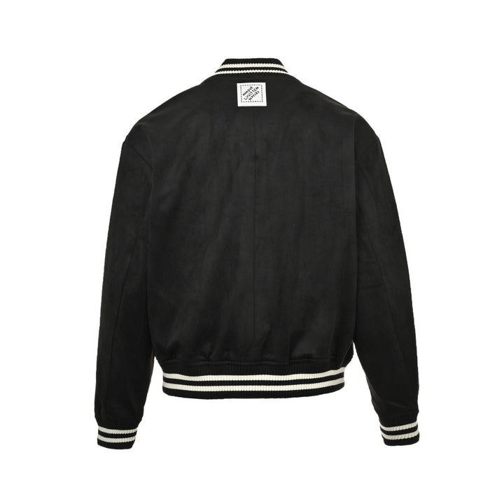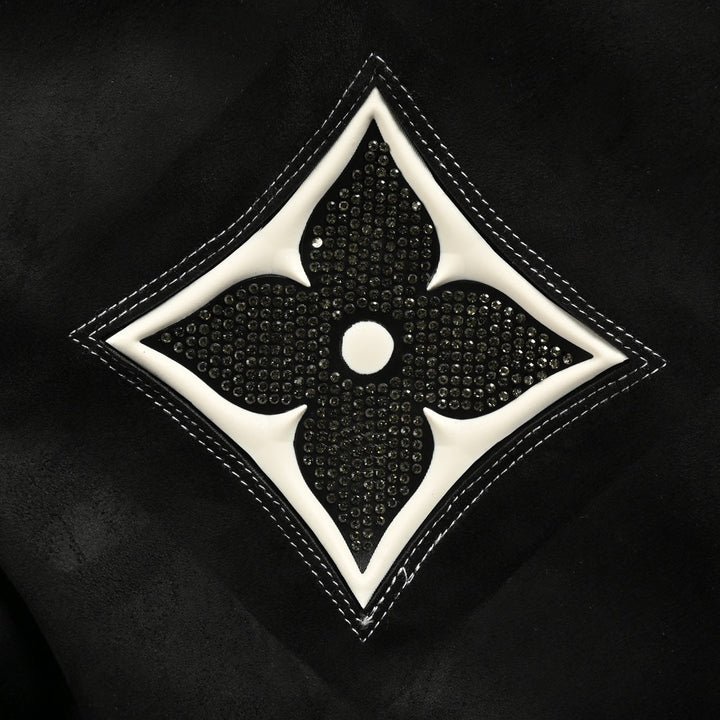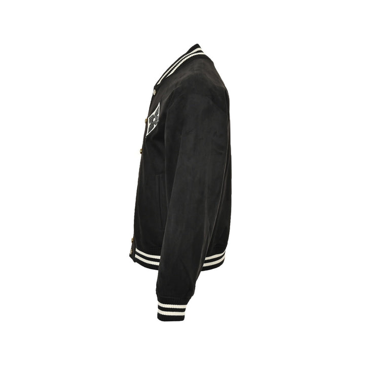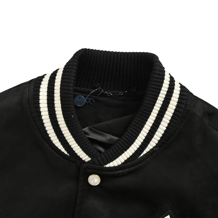 Heiße Baseballjacke aus Wildleder mit vierblättrigem Kleeblatt-Logo und Strasssteinen