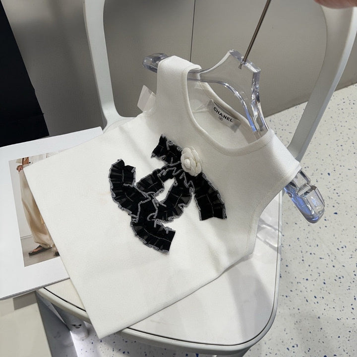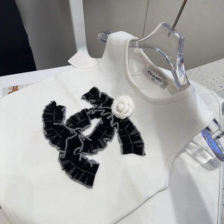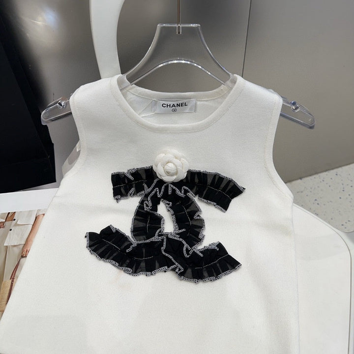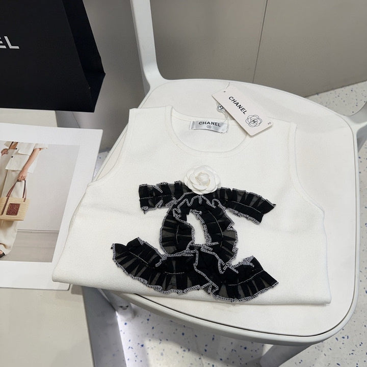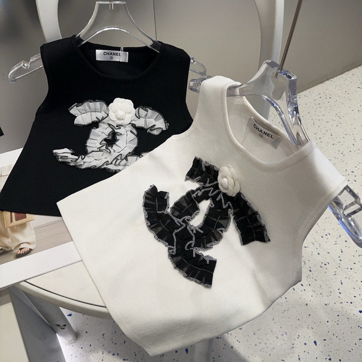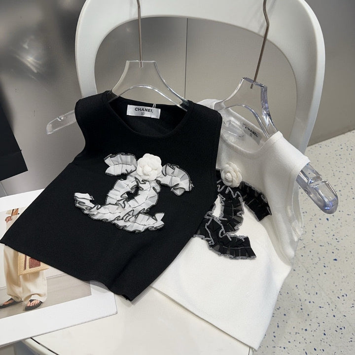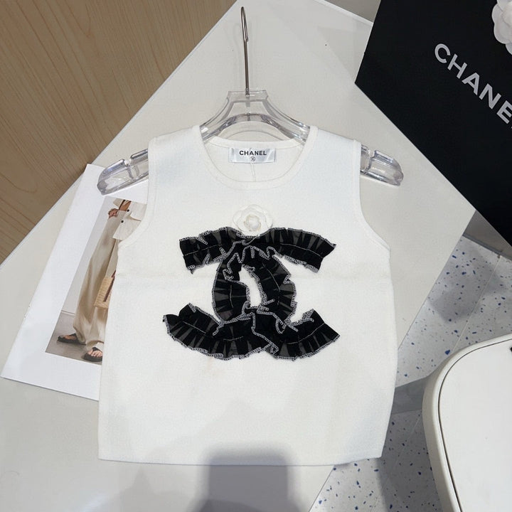 Diese ärmellose Strickweste ist ein raffiniertes Basic, das klassische französische Eleganz mit moderner Vielseitigkeit verbindet und die raffinierte Ästhetik der Trends verkörpert.