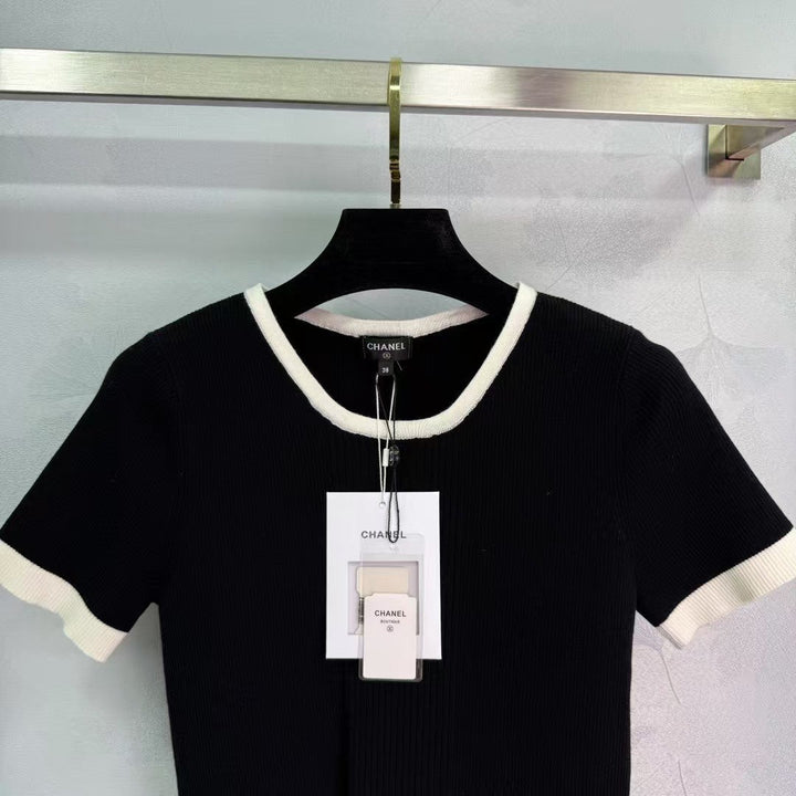 Strickpullover in Panda-Farben mit kurzen Ärmeln