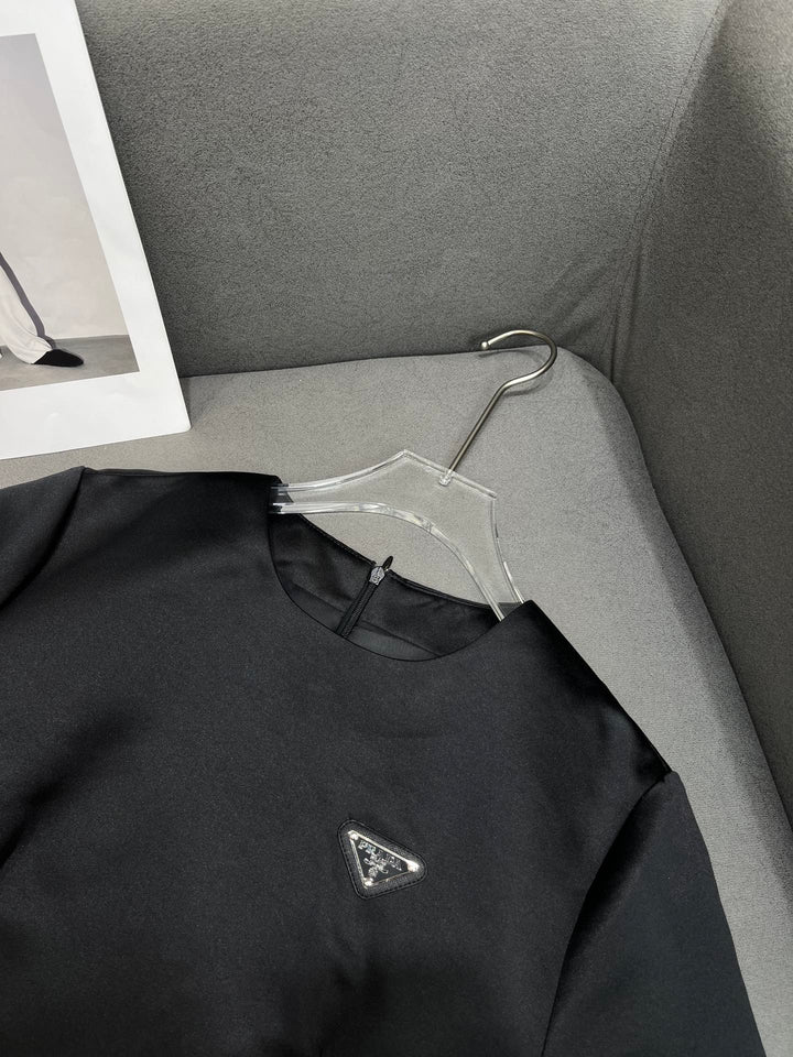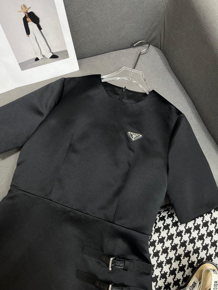 Neues Kleid im Frühherbststil mit halblangen Ärmeln 👗/Nylonstoff/Gürtelschnalle mit Dreiecksetiketten-Dekoration/hohe Qualität/einfarbig, drei Größen SML