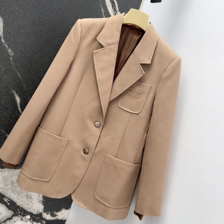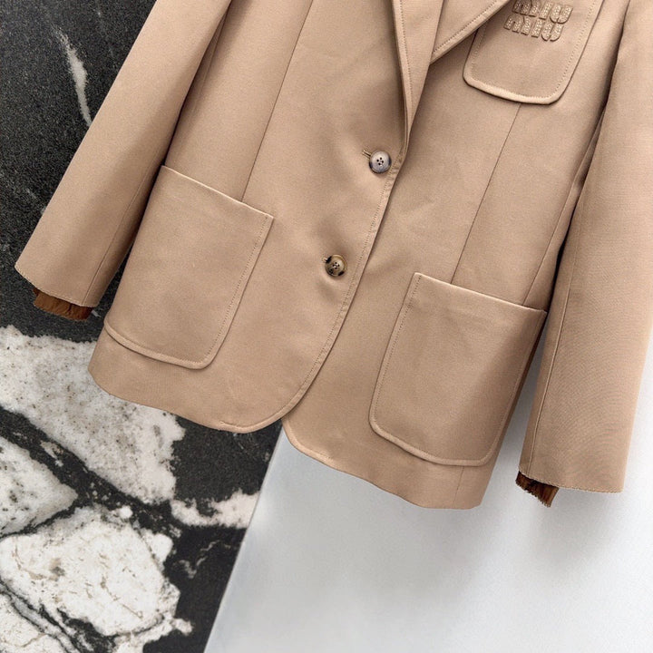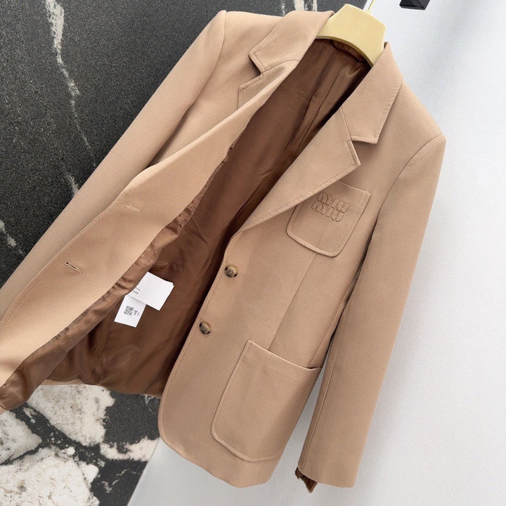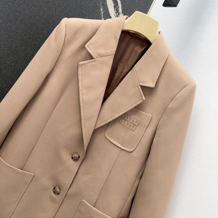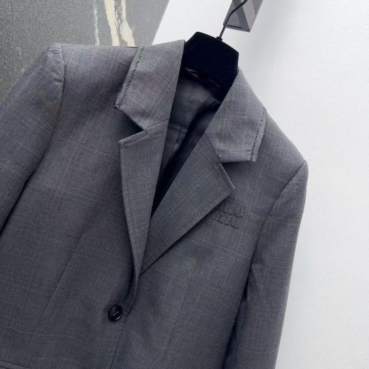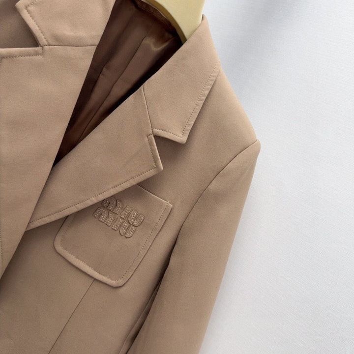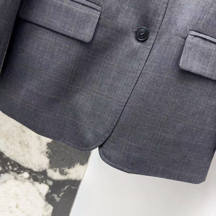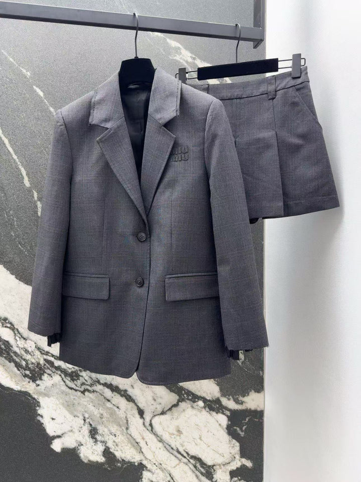 Anzugset im College-Stil mit Wollstoff, tolle Textur, lässiger und verspielter Mädchenstil, lockeres Revers mit hoch tailliertem Faltenrock, Metallkopfgürtel, hoch taillierter kleiner A-Linien-Minirock, hoch und dünn, ein Set passender Super-Age-Reduktions-SML