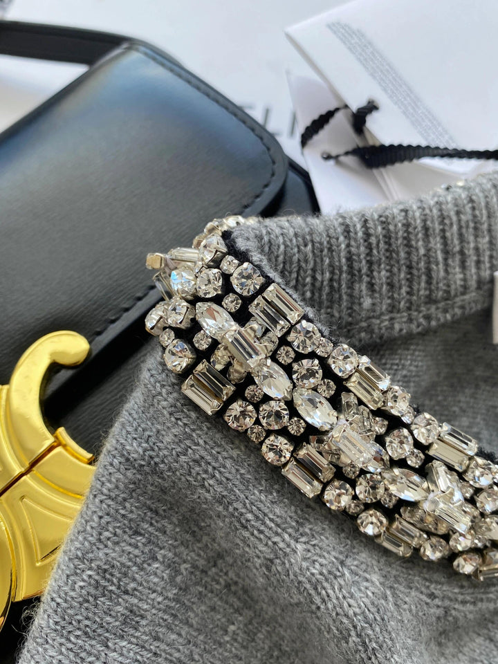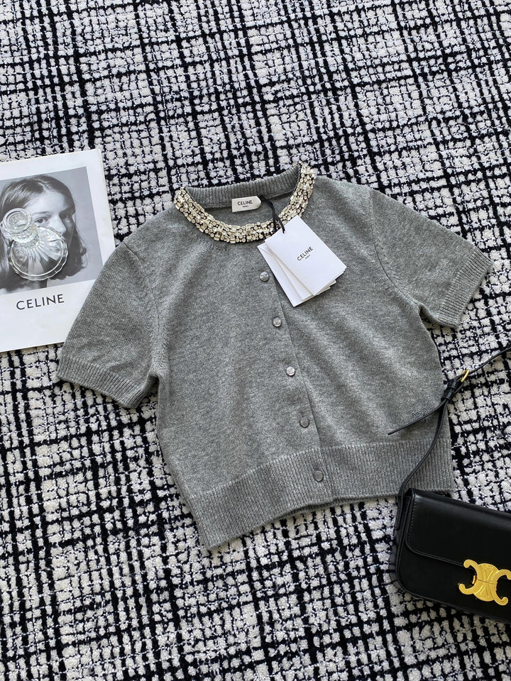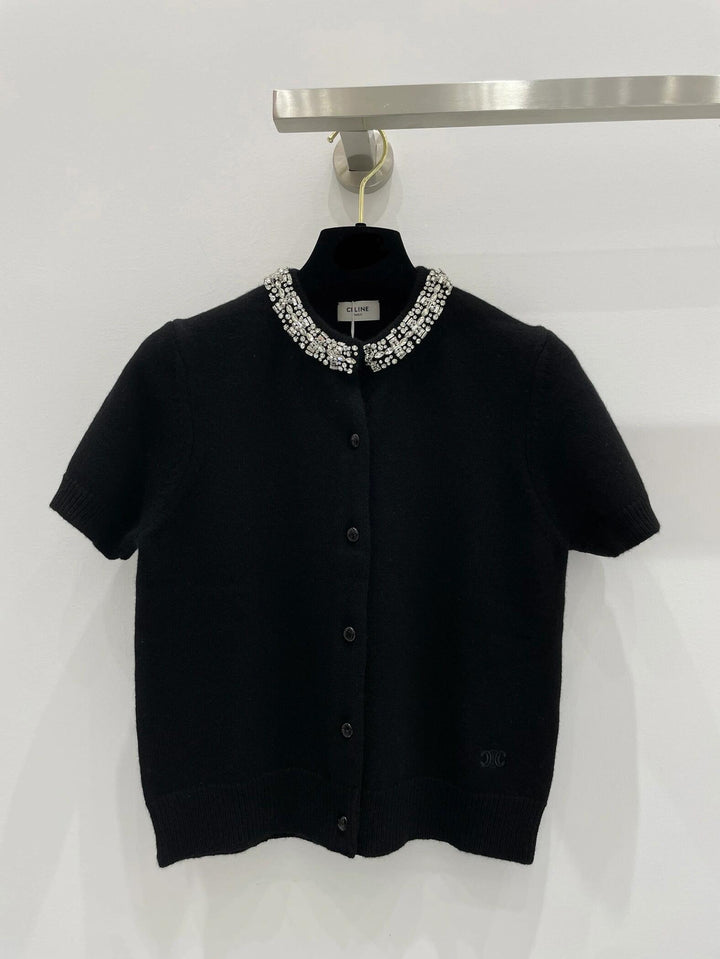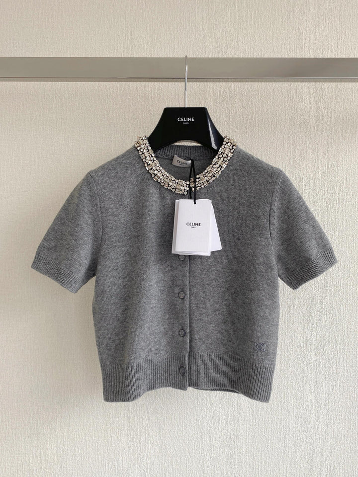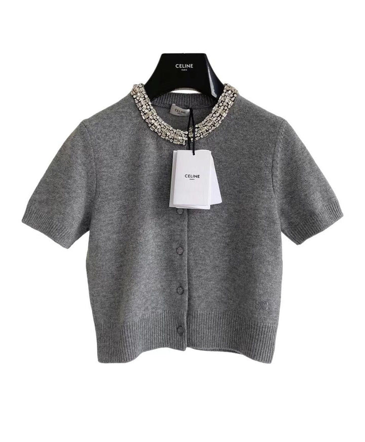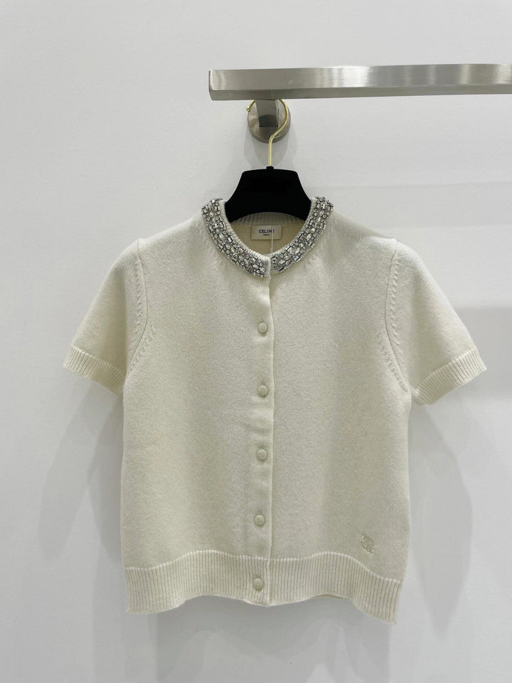 Kurzer Diamantkragen, kurze Ärmel aus Strick