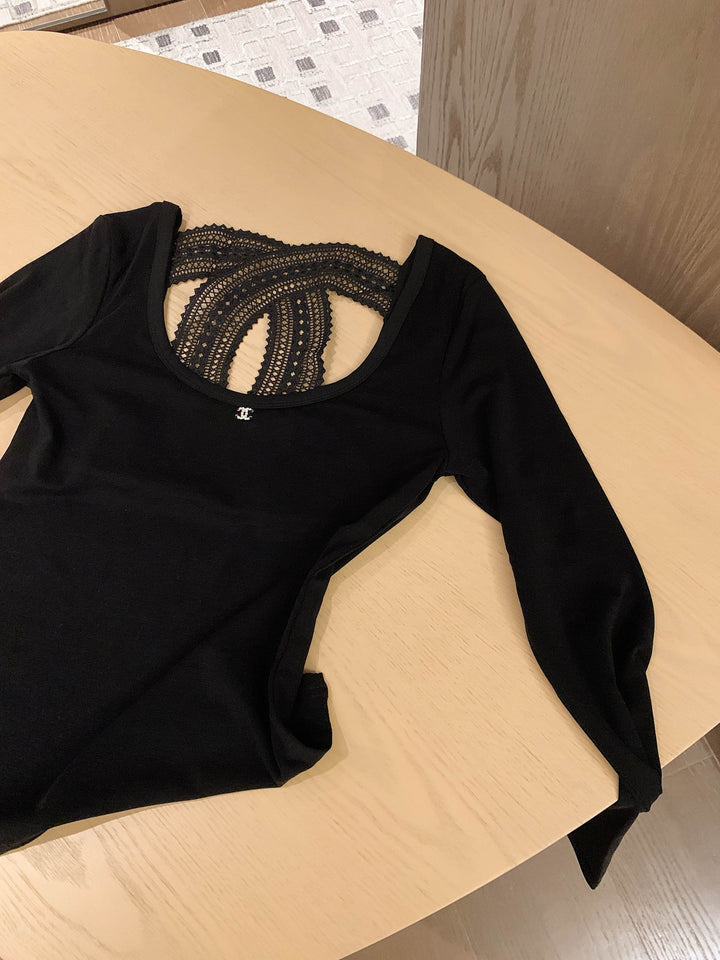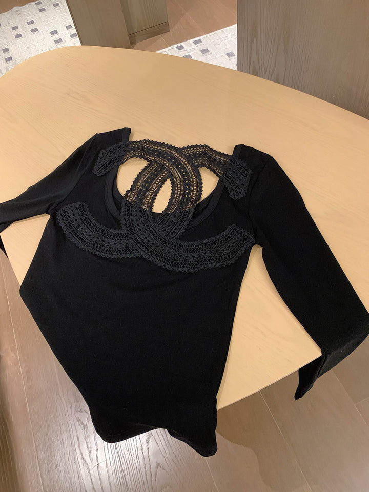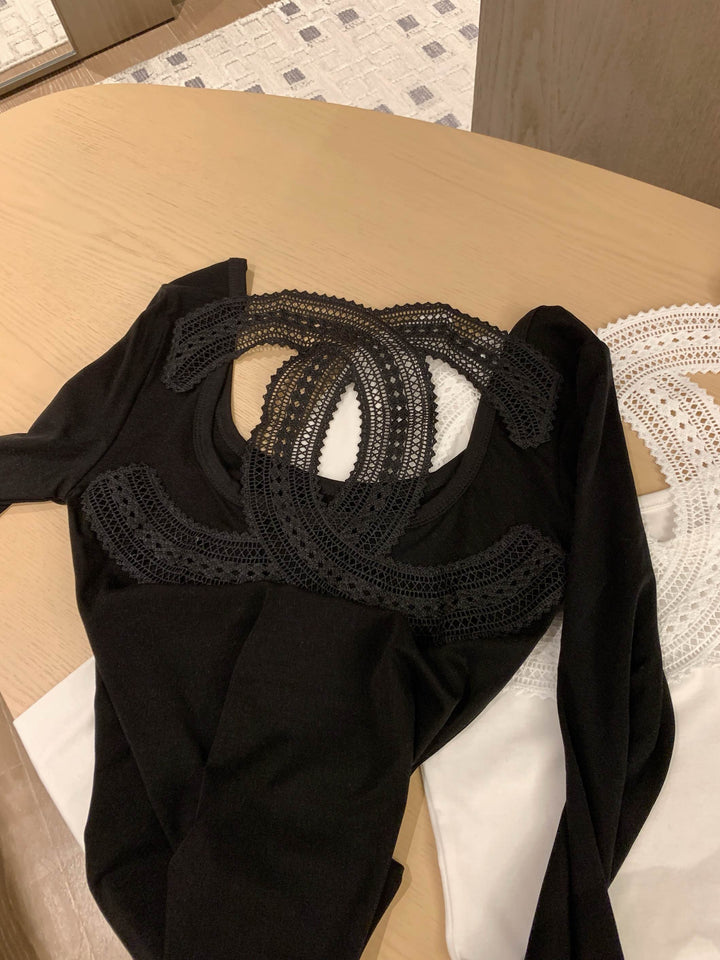 Ein heißer Artikel, exklusiv und zum ersten Mal erhältlich. Maßgefertigter Pullover mit gestapeltem Spitzenkragen und Hohlsaum aus importiertem YB-Garn für einen hochwertigen, bequemen und weichen Look. Der Rundhalsausschnitt und die langen Ärmel sind mit Spitzenbesatz versehen, wodurch ein gestapelter Kragen und ausgestellte Manschetten entstehen, die den aristokratischen Look ergänzen und ihm eine schlanke und feminine Note verleihen. Der durchgehende Hohlsaum ist stylisch und sexy. Das 3D-Doppel-C-Logo auf der Brust spiegelt die Manschettenknöpfe wider und unterstreicht die hochwertige Positionierung und den modischen Ton. Die reguläre Passform sorgt für einen sanften, ruhigen und raffinierten Stil.