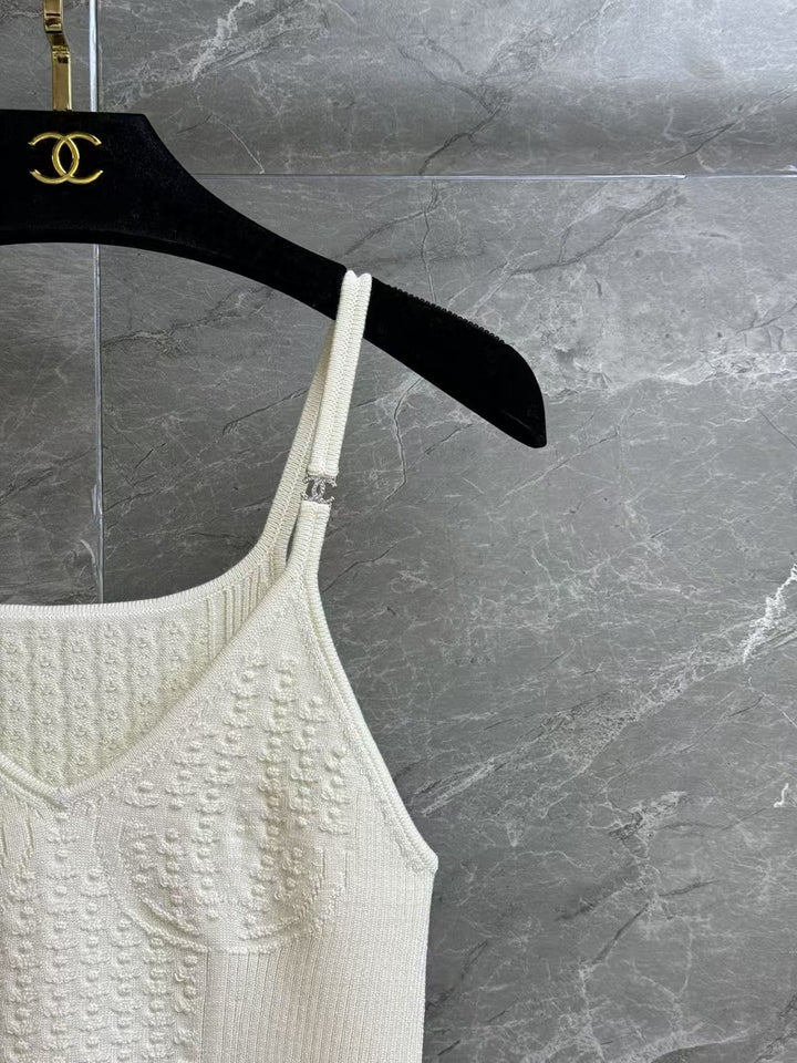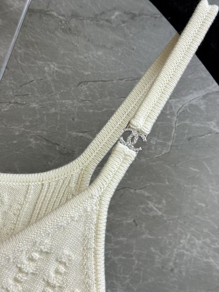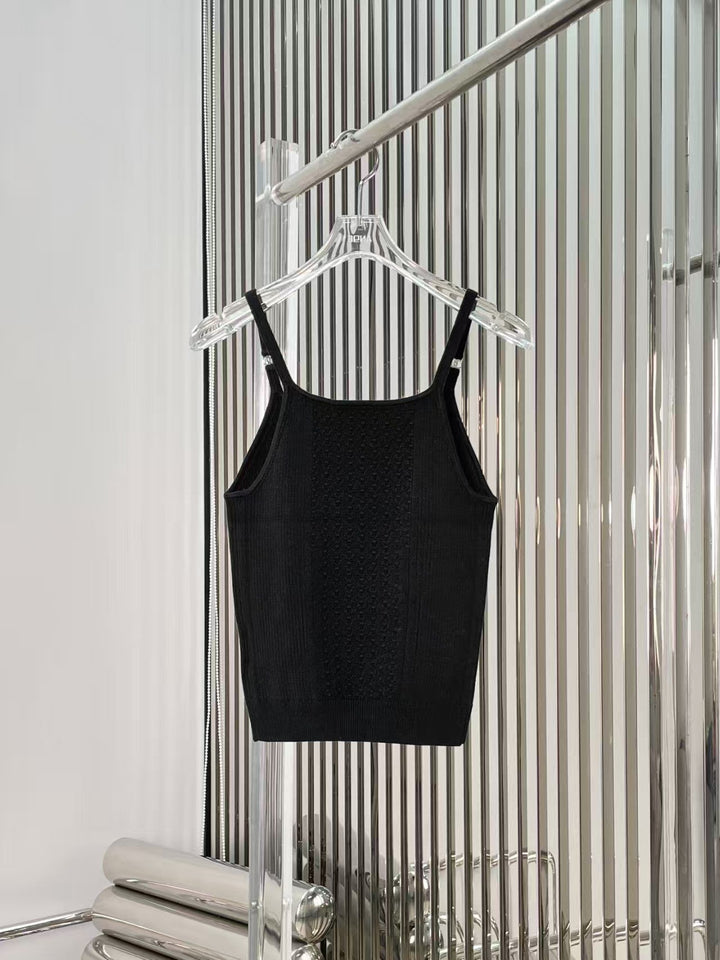 Camisole strass Aperçu de la série printemps/été 2025 Bretelles décorées de logos strass Motif jacquard tridimensionnel Exquis et à la mode Tissu tricoté en coton Confortable et doux pour la peau Coupe slim élastique Vous fait paraître mince et polyvalent