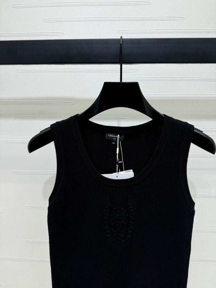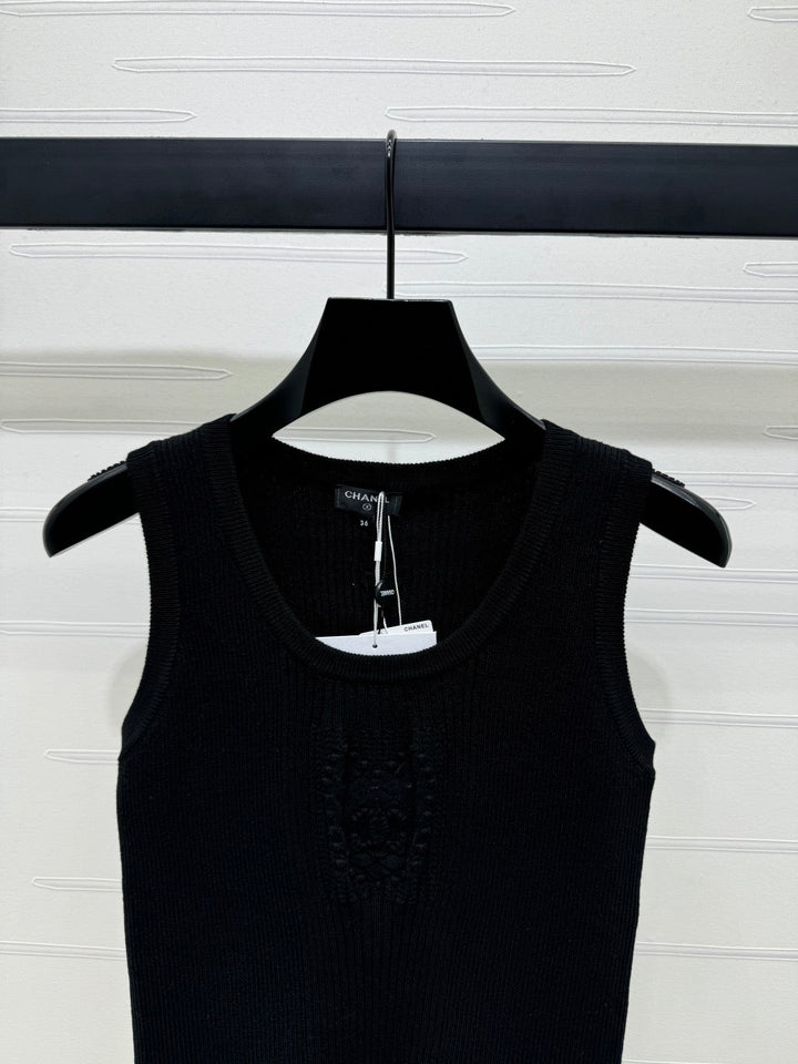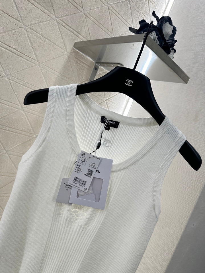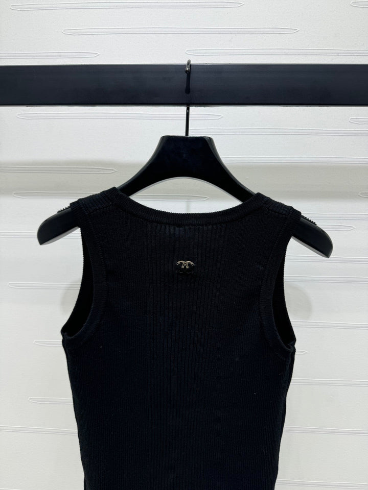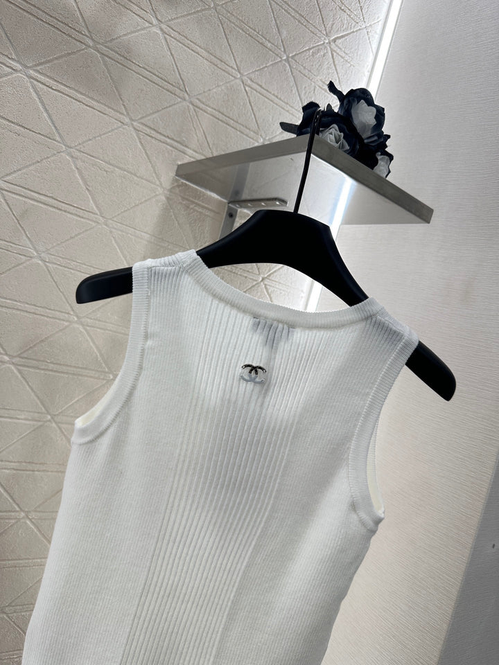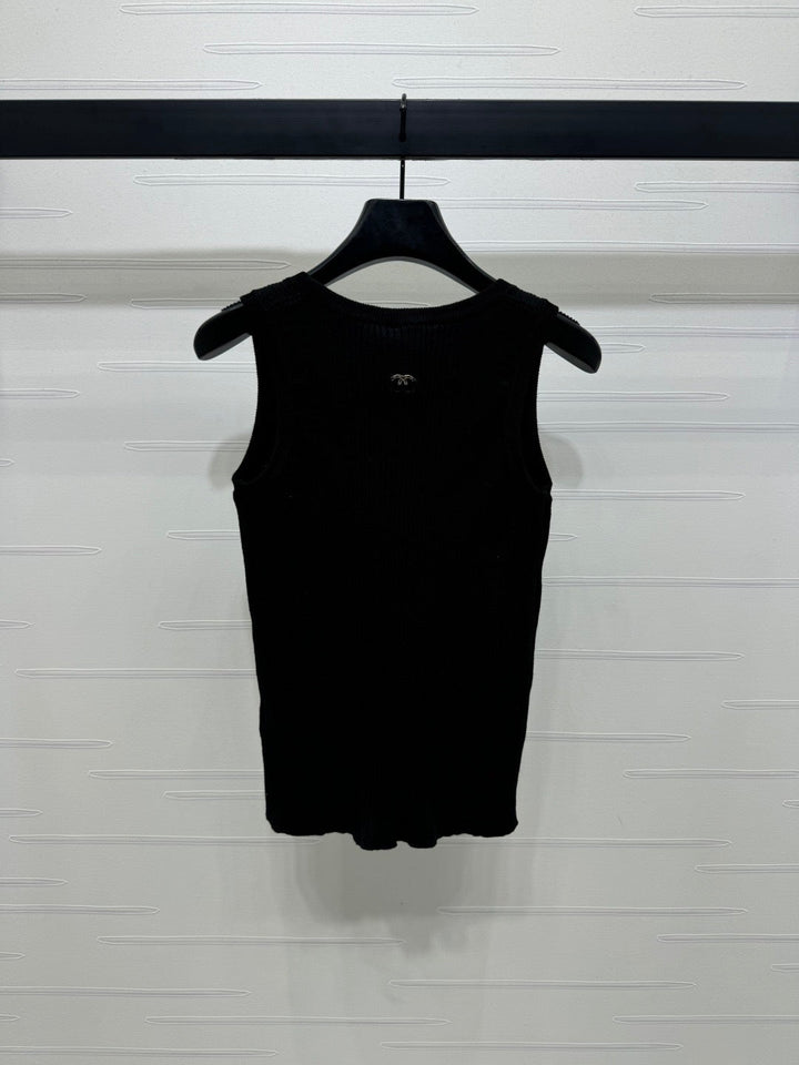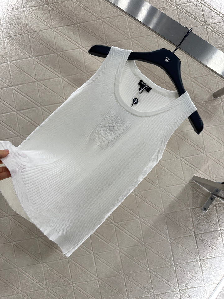 Customized YB wool yarn weaving, breathable and comfortable, full of texture, knitted vest cutting, light and breathable, more suitable for summer, heart double C letter pattern on the chest, colorful layers, double C metal label on the back, highlighting the brand style, the garment is slightly elastic, showing a slimming visual effect, it is stylish to wear alone or with an inner layer, customized surface and accessories, identify the version, high version, 2 colors, 36, 38, 40