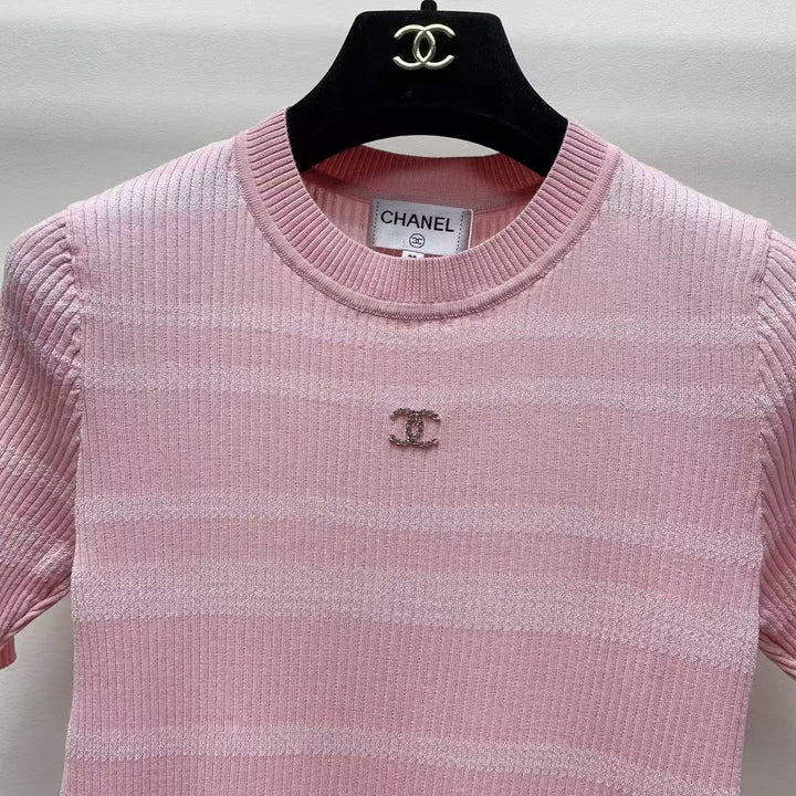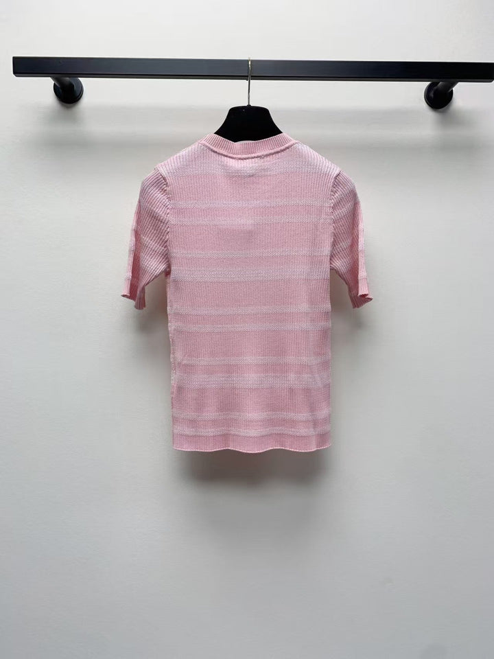 25 Pulls tricotés rayés à col rond et manches courtes pour le printemps et l'été