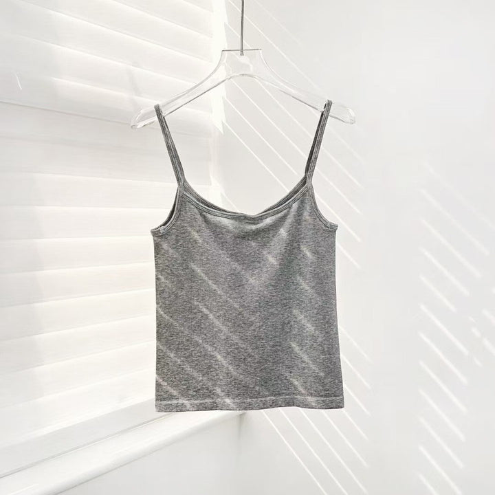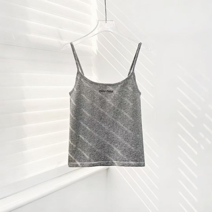 Nouveauté 25SS pour le début du printemps ! Bretelles tricotées sans coutures avec logo brodé, logo brodé sur la poitrine, fines bretelles, coupe ajustée, couvrant la poitrine, idéales pour la superposition. Mélange de fils et de détails jacquard, pour un look polyvalent et jeune. À assortir ou dans la même couleur.