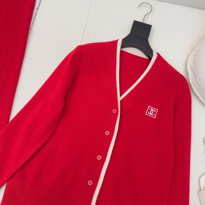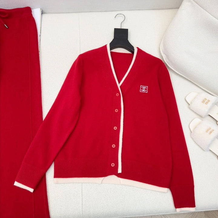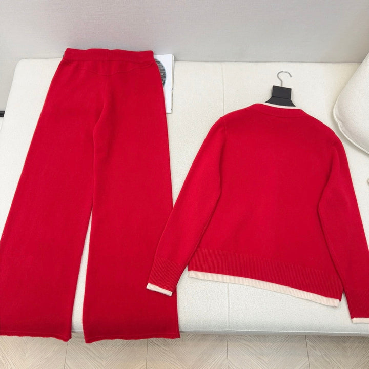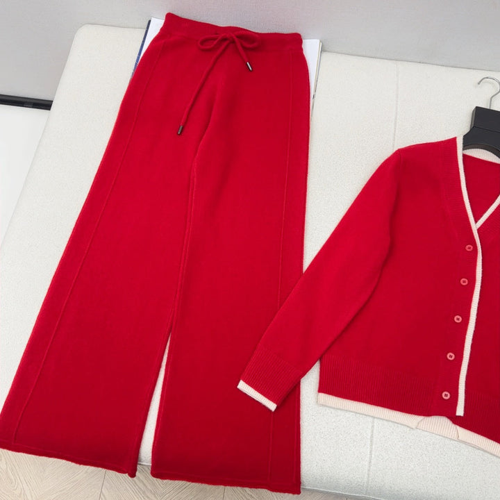 The latest lazy-style wool suit for autumn and winter đź©¶Fake two-piece V-neck knitted cardigan + straight pants 100% thickened fine wool yarn fabric Simple and elegant lazy style Durable and durable Warmth and appearance are both online~~The most practical and versatile boutique Autumn and winter base layering daily advanced! ! Super large elasticity does not pick body shape one set for sale
