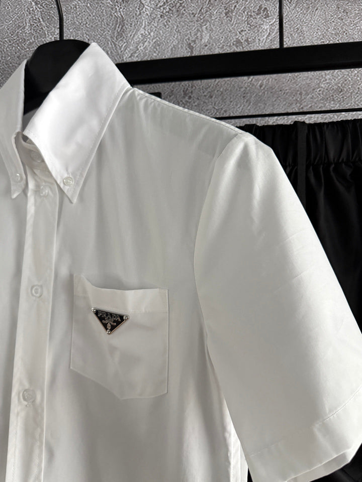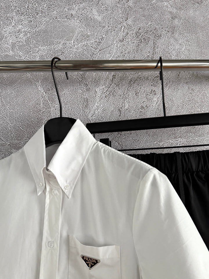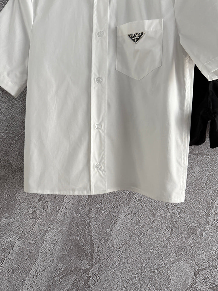 White shirt ✨Classic college style shirt, high-density 80-count poplin cotton, button-down collar and short sleeves, the body of the shirt presents a simple style pocket, the triangular micro-logo adds a finishing touch, full of literary and artistic style, easily grasping the cool feeling of intellectuals, reducing age and vitality, the overall version is straight and fit, the upper body presents a slim visual effect