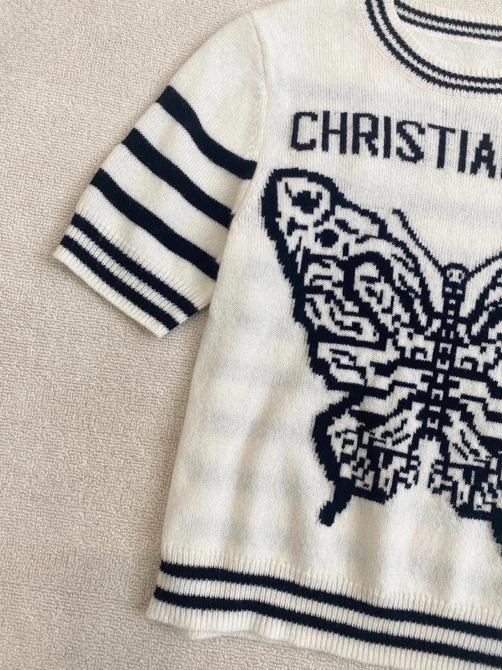 Le motif papillon léger conçu est plein de vie, un t-shirt tricoté qui coexiste avec romantisme, élégance, confort et beauté ~