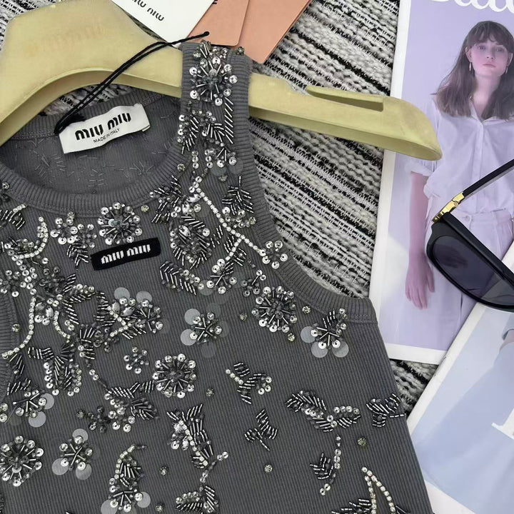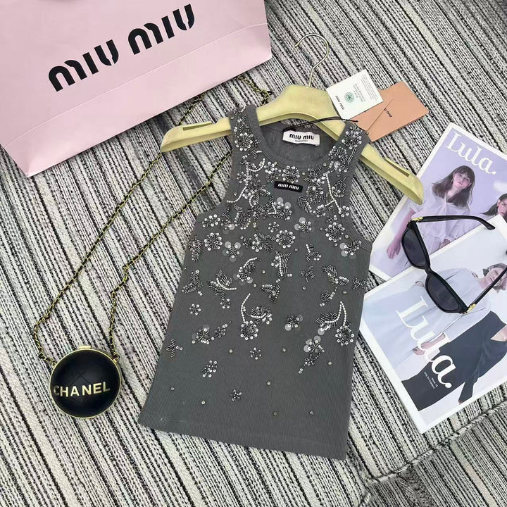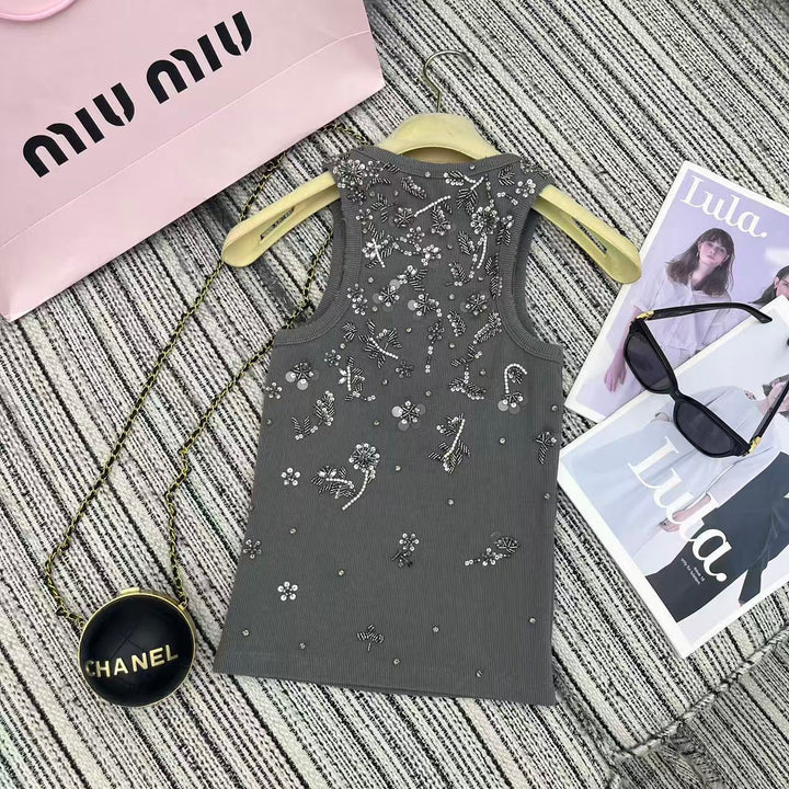 MM* 2025SS Floral Beaded Camisole – Handcrafted Luxury