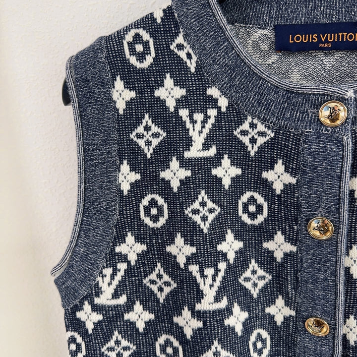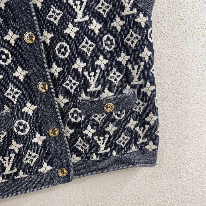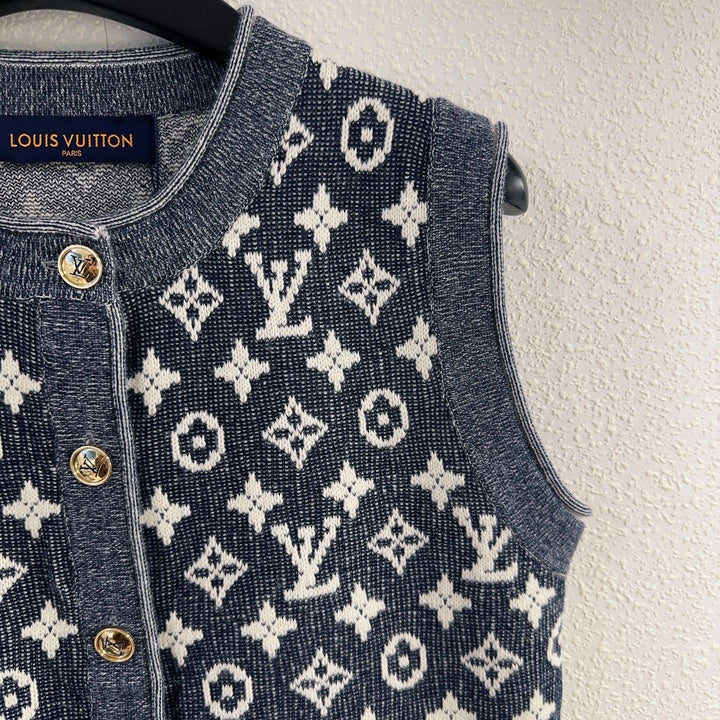 The Classic Monogram jacquard double-pocket sleeveless round-neck cardigan is an elegant piece that combines classic and fashion. It is woven with exquisite jacquard technology to show the brand's iconic monogram pattern, highlighting a sense of low-key luxury. The sleeveless round neck design is simple and generous, and the double pockets add practicality and layering. The open-neck style is easy to put on and take off, suitable for the transition season between spring and summer to match with a shirt or dress. Selected high-quality yarns ensure softness and skin-friendly, which is an ideal choice for creating a retro college style or a light mature style