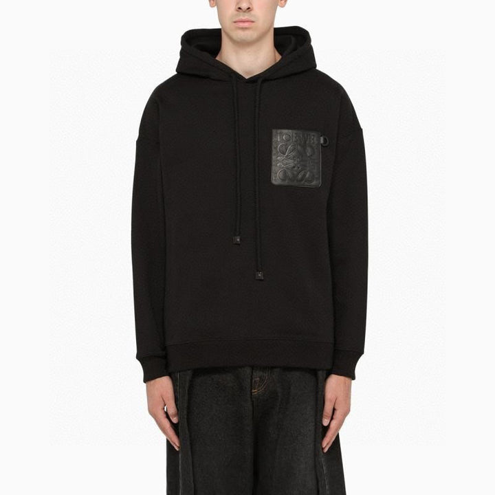 Sweat à capuche avec patch en cuir gaufré sur la poitrine
