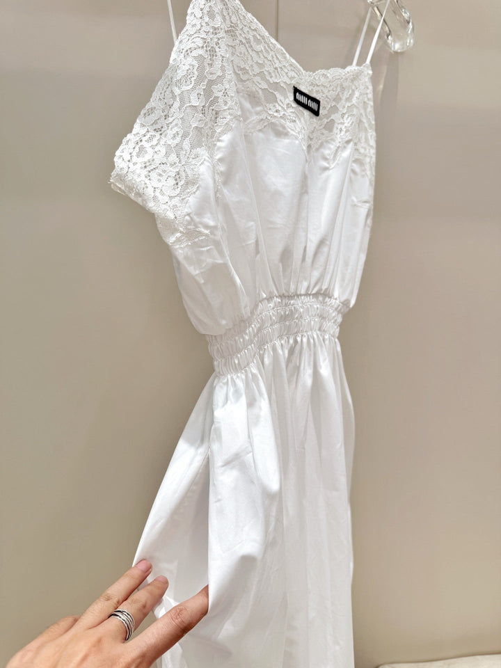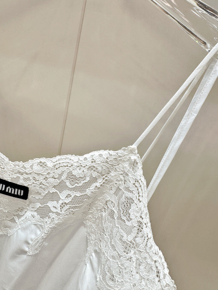 Lace-Trimmed Satin Slip Dress