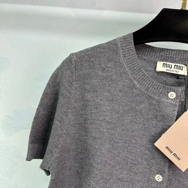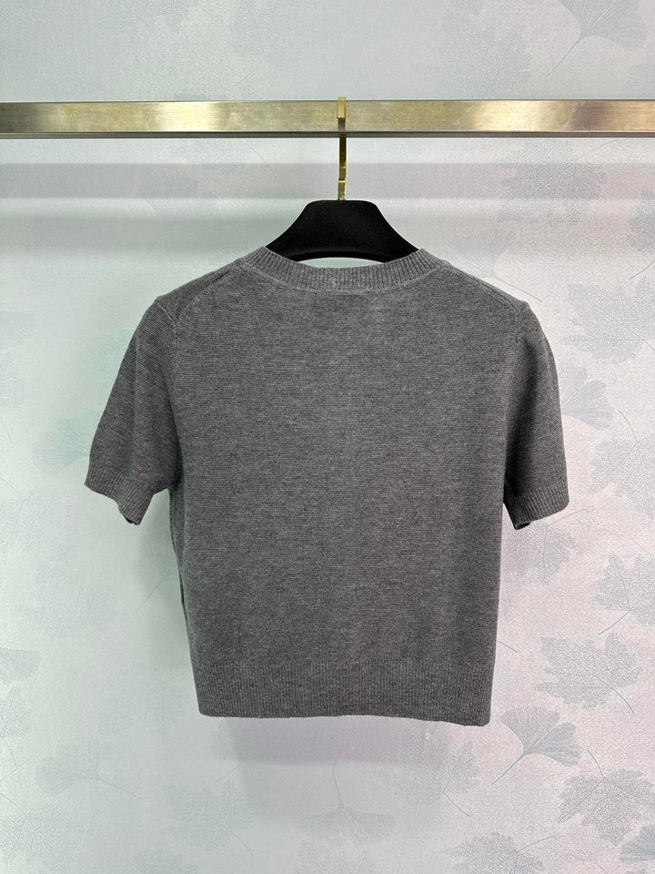 Ce pull en cachemire à manches courtes est confectionné dans un cachemire de haute qualité, doux et délicat au toucher, confortable et chaud. Son design à manches courtes est simple et tendance, idéal pour le printemps et l'été. Classique et polyvalent, il s'associe avec élégance à une jupe ou un pantalon. Portez-le et profitez d'une double expérience : chaleur et style.