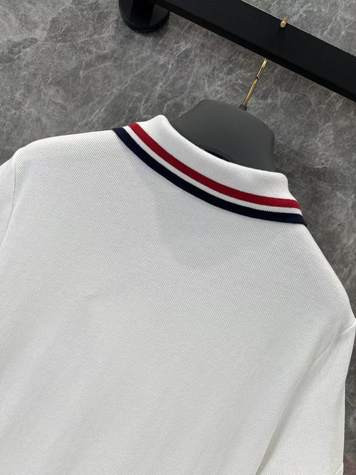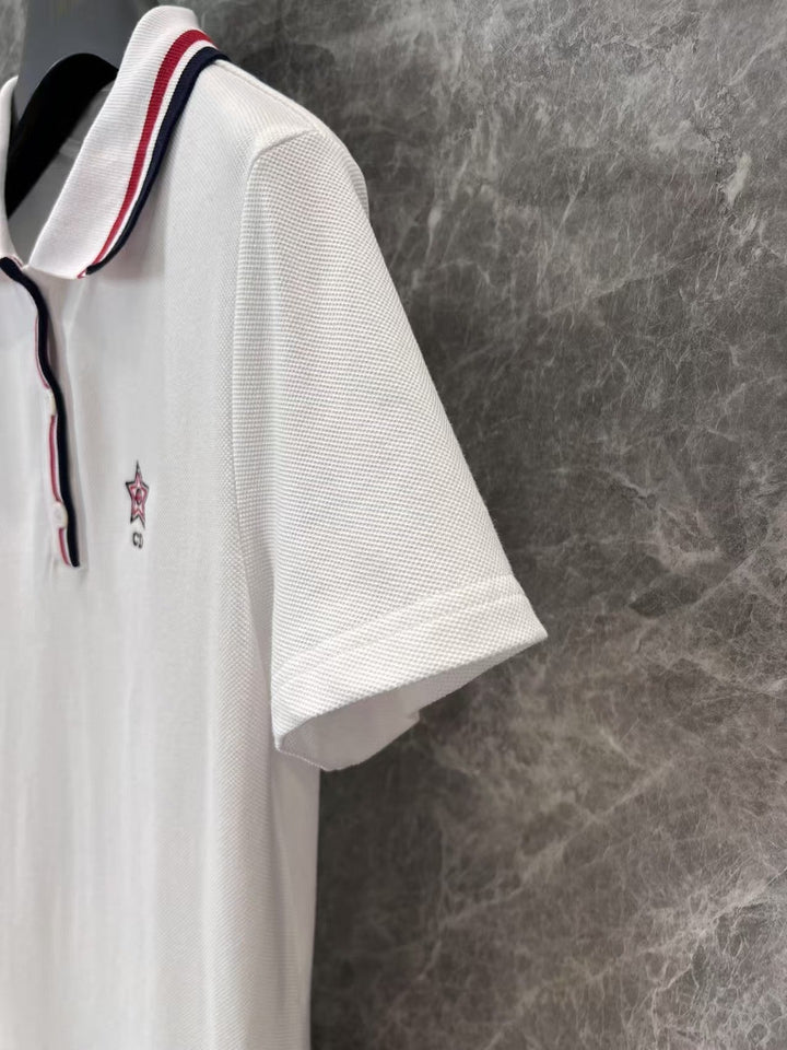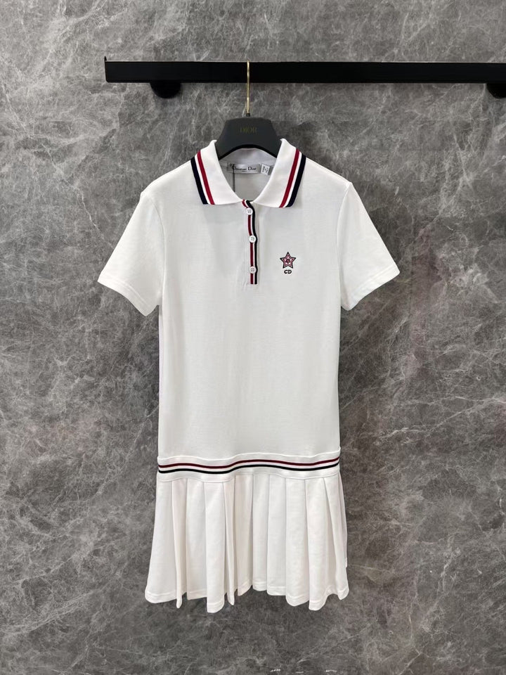 Robe plissée classique à revers, style universitaire, nouvelle collection printemps-été 2025 ! En pur coton perforé, respirante et confortable. Modèle à revers plissé. Col semi-ouvert avec boutons, ajustable. Le contraste des fils sur le devant du col met en valeur l'étoile à cinq branches sur la poitrine. La sobriété souligne le charme de la marque et enrichit le style. Le bas du corps est structuré par des rayures.