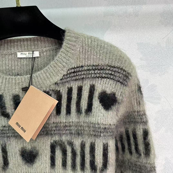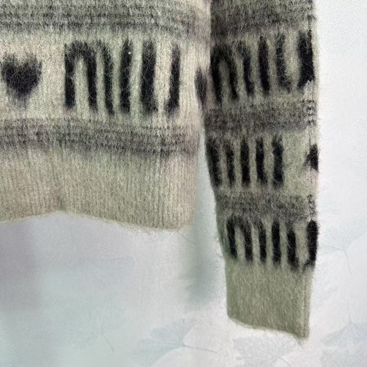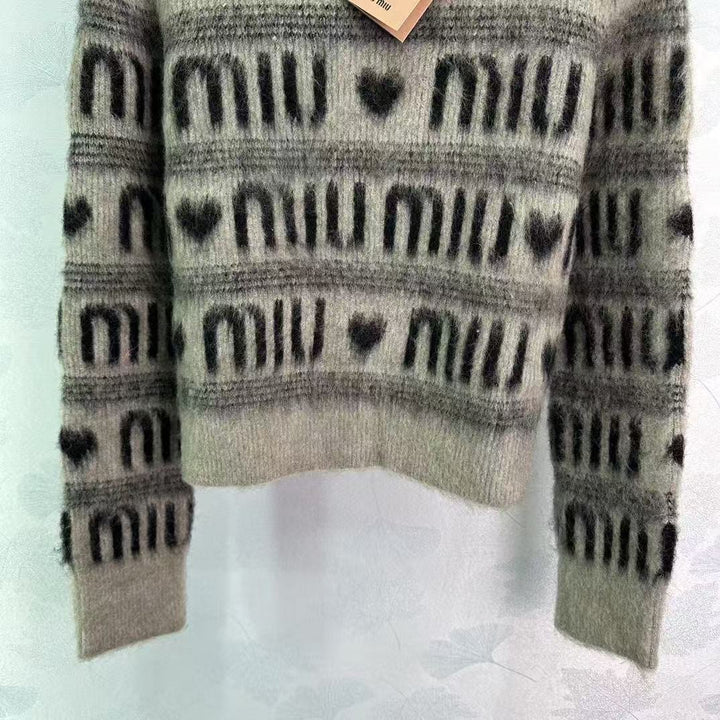 Imported high-proportion ultra-fine mohair material, soft and comfortable! Stripes with contrasting letters and hearts, youthful temperament and full of girlish atmosphere, suitable for daily commuting, and very slimming. 1 color and 3 sizes sml.