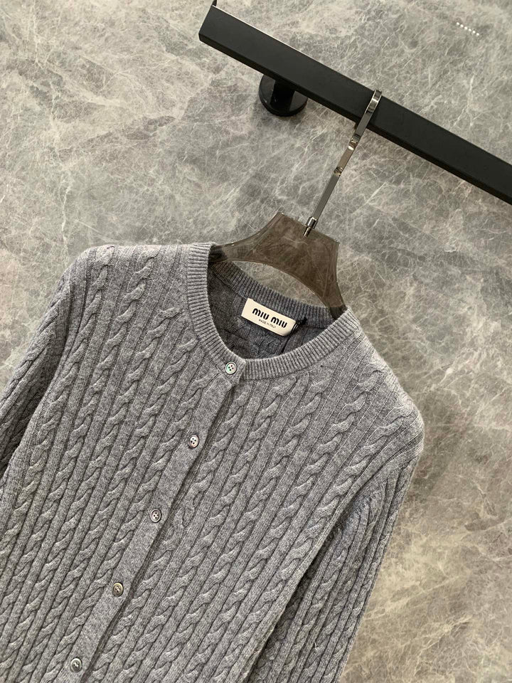 Cardigan en maille torsadée simple avec logo intarsia en cachemire