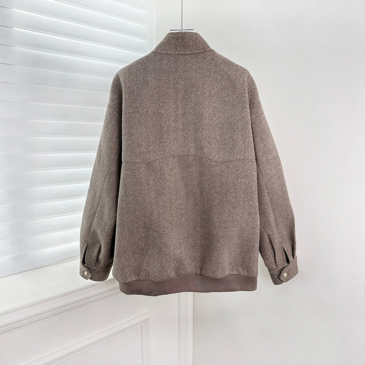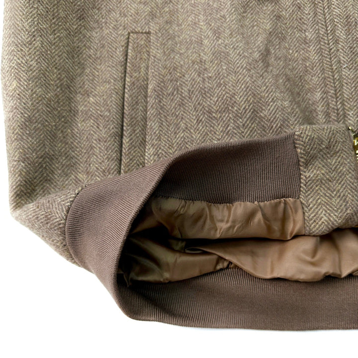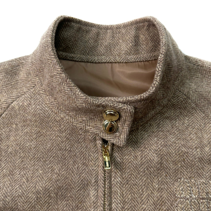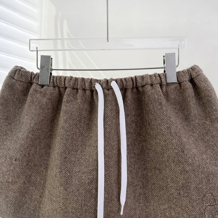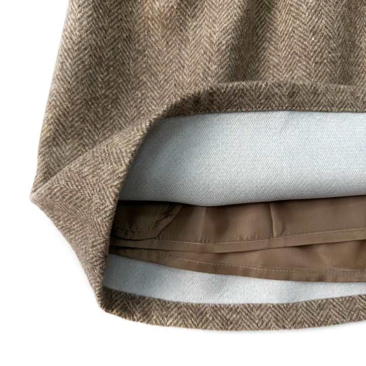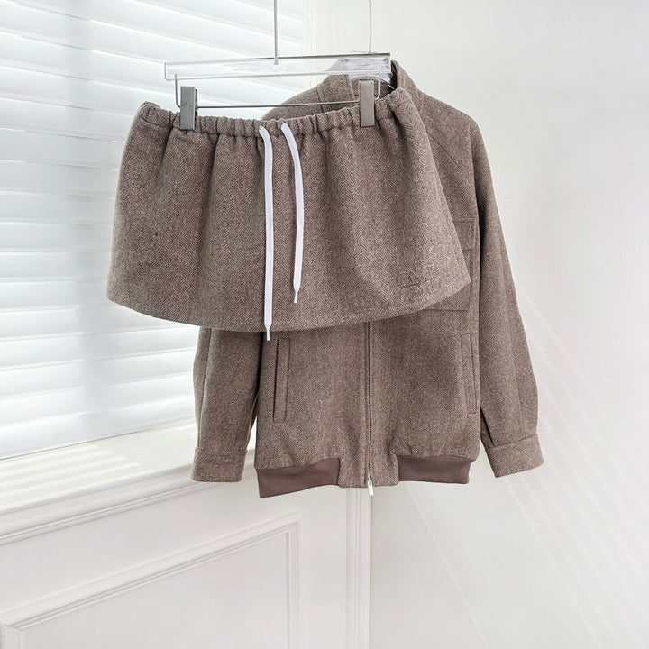 Tenue Maillard, veste oversize à motif chevrons classique, grandes poches à rabat, logo brodé en touche finale, la même jupe fait également écho à la broderie du logo de la veste, design de poche à cordon, un ensemble complet !