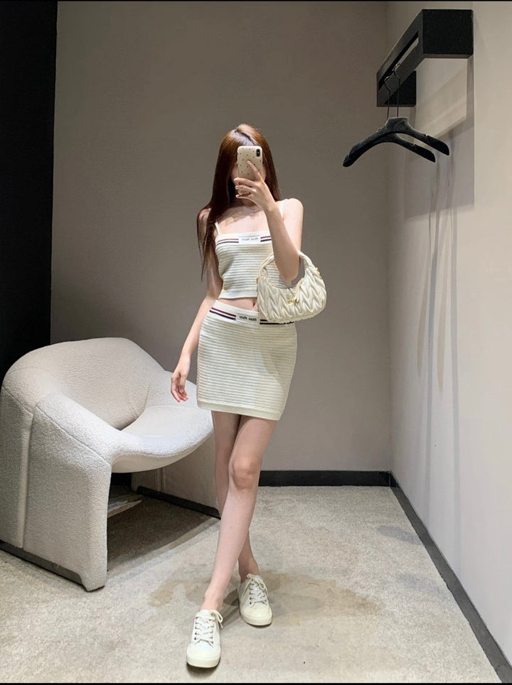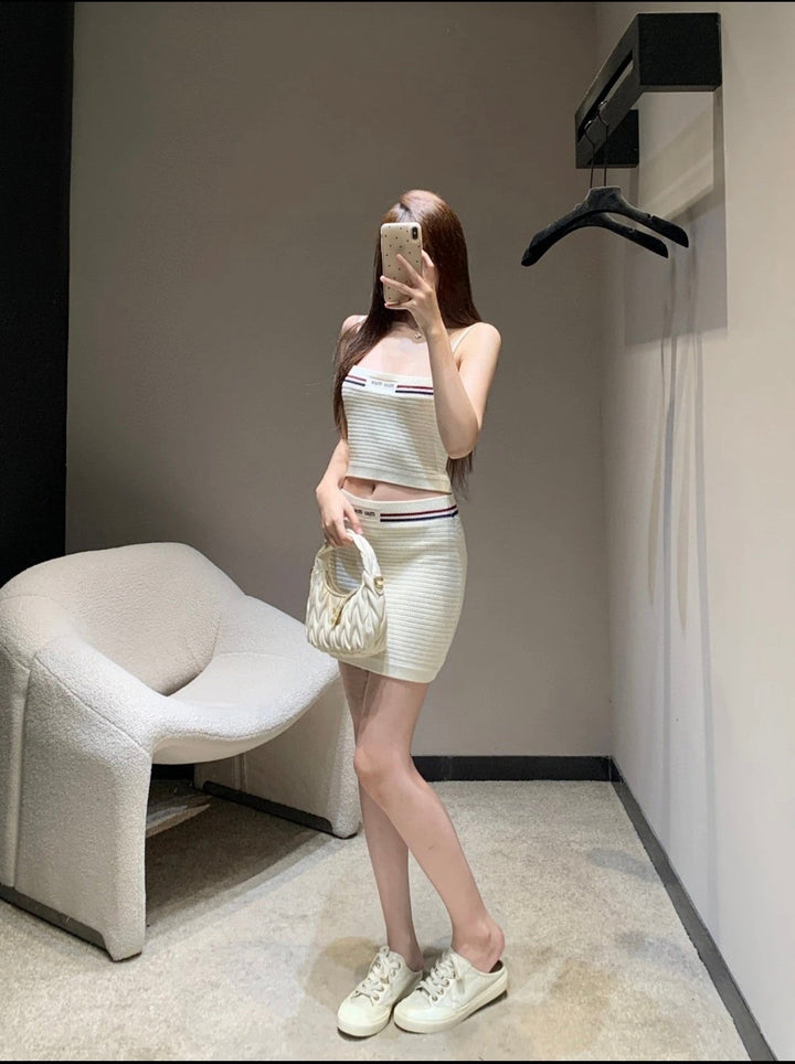 Sporty-Chic Knit Cami & Mini Skirt Set