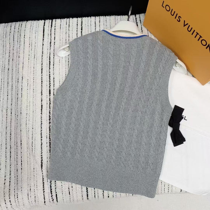 Nouveau gilet tricoté brodé à col en V pour le printemps et l'été