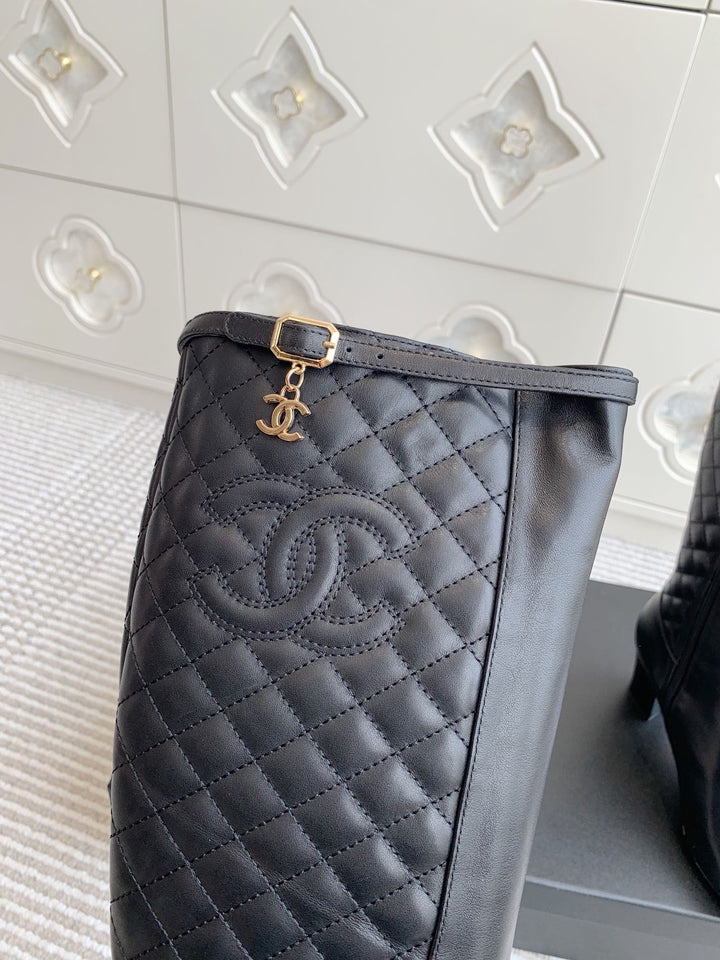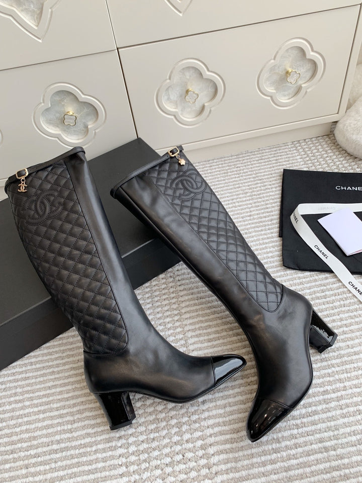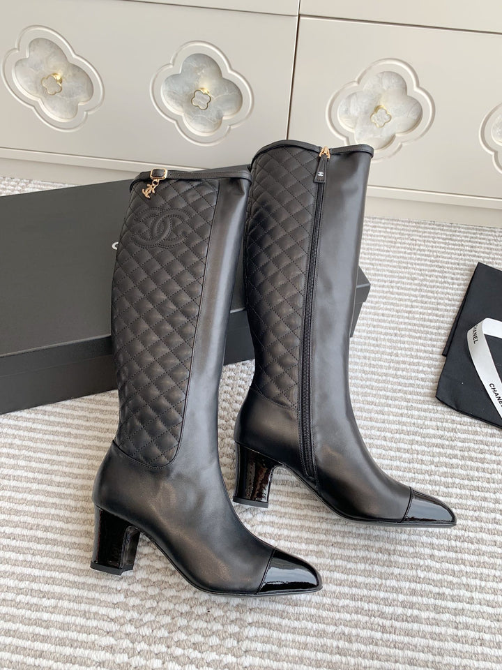 Electric embroidery diamond pointed toe thick heel long boots