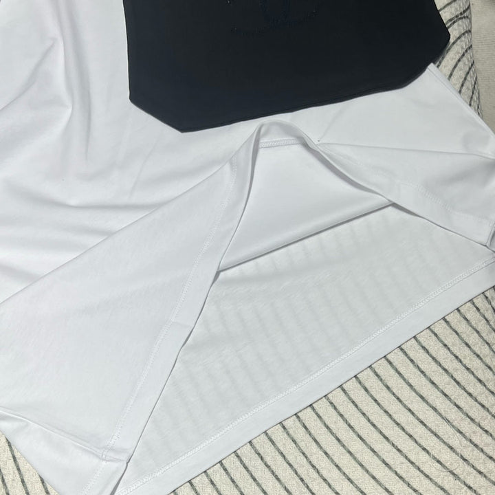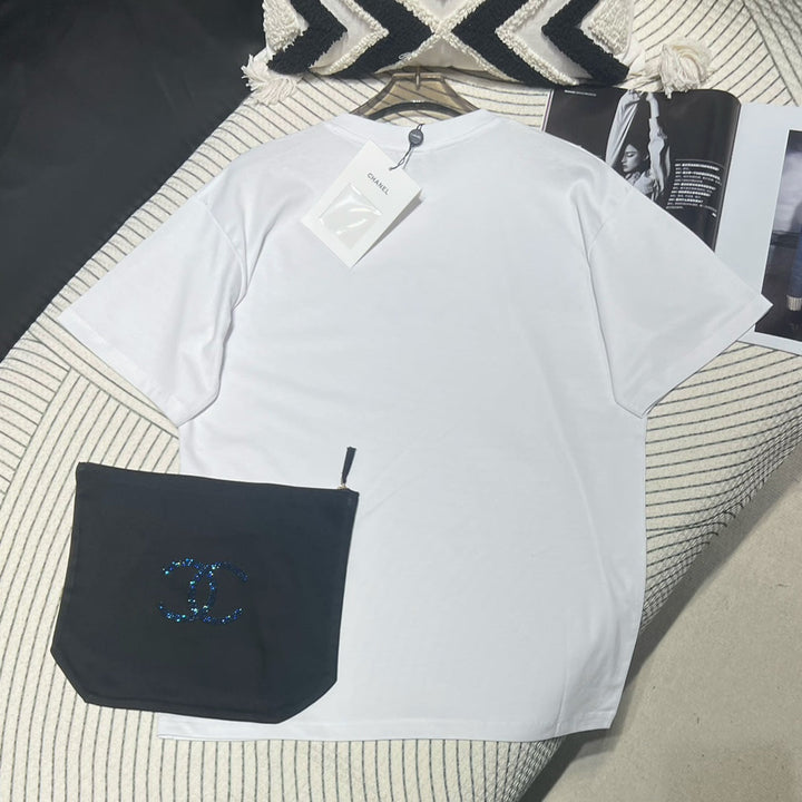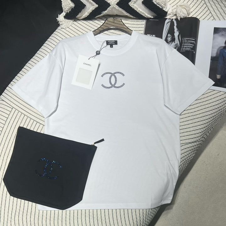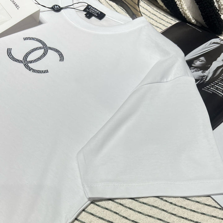 Cette collection de chemises à manches courtes de style resort est confectionnée avec un savoir-faire artisanal. Très élégantes, elles sont confectionnées en coton sur mesure. Confortables et respirantes, elles sont ornées de diamants Swarovski double C sur la poitrine, un accessoire tendance et accrocheur. Ce modèle, aux motifs discrets, se porte facilement avec des jupes. Les jeans sont un véritable luxe ! Des articles polyvalents, tendance pour l'été et anti-âge.