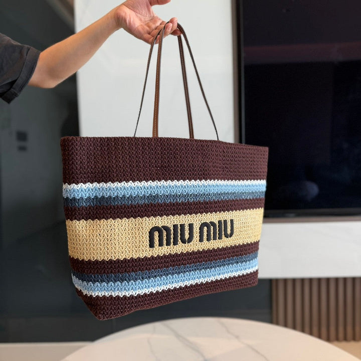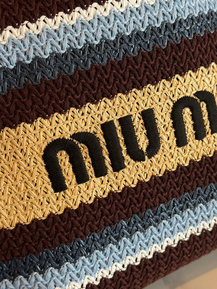Striped Woven Straw Tote