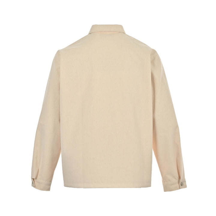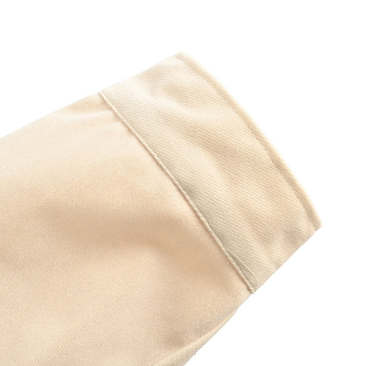 Yarn of dyed yarn, the use of 520 grams of cotton denim material (first wash, a layer of silicone oil to remove the floating color, and then start flocking, from the order of 5000 meters, flocking denim process, needle wear severe, 100 meters for a needle, flocking after washing, light yeast, finally drying singeing, custom-made open-die chest triangle, custom-made 17mm i-button, clothing sand washing process, clothing pick shell process, custom accessories, factory production is very challenging work