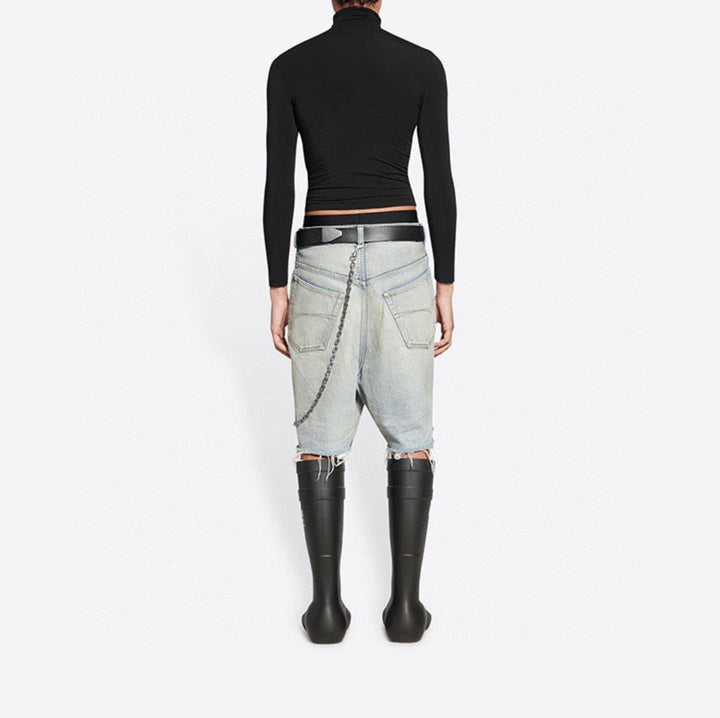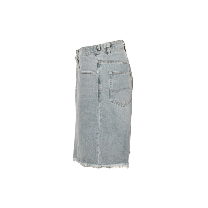 distressed tassel hem denim shorts