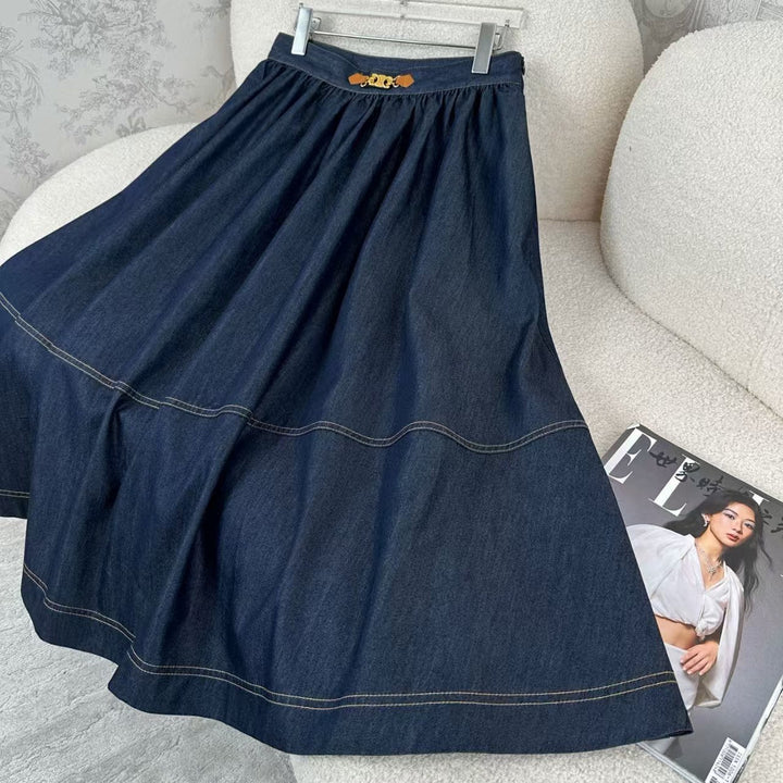 25 Early Spring Fashion Denim Long Swing Skirt
