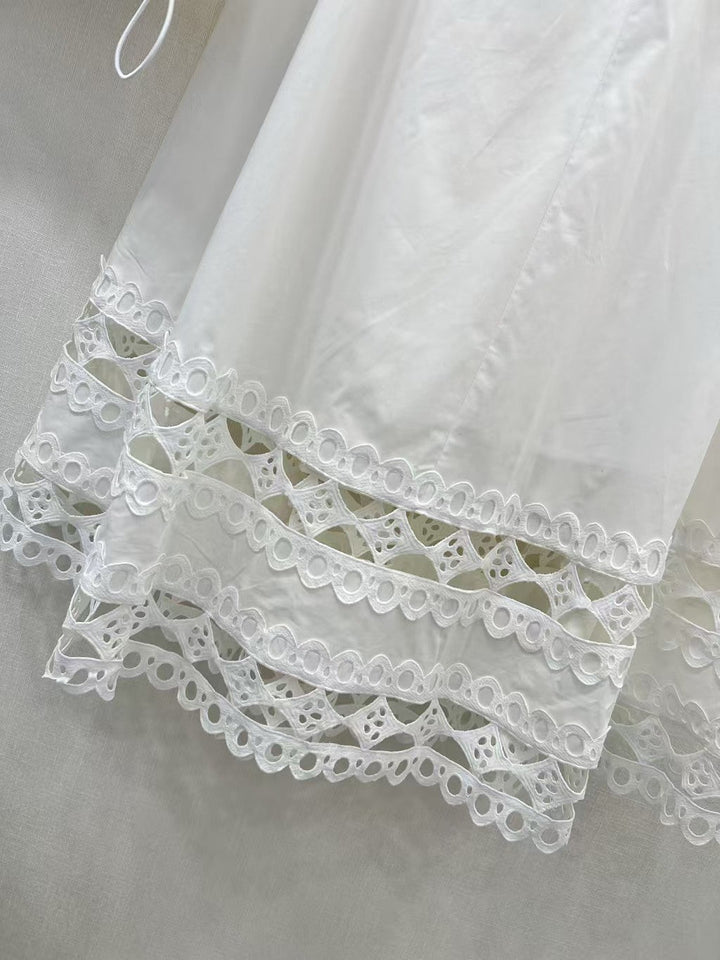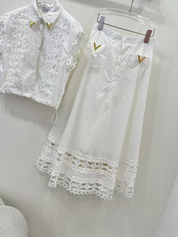 25 new style skirt set Lapel water-soluble flower hollow hem drawstring top + skirt combination Customized water-soluble flower decorated skirt with pockets Classic brand V-shaped metal oversized high waist burnt flower skirt is slim and elegant Lined with cotton cloth First choice for daily wear High-end temperament, elegant and charming! The waist-hugging version perfectly shows the waistline, and the upper body is super slim, full of atmosphere White, rich and beautiful low-key temperament High value with fairy feeling