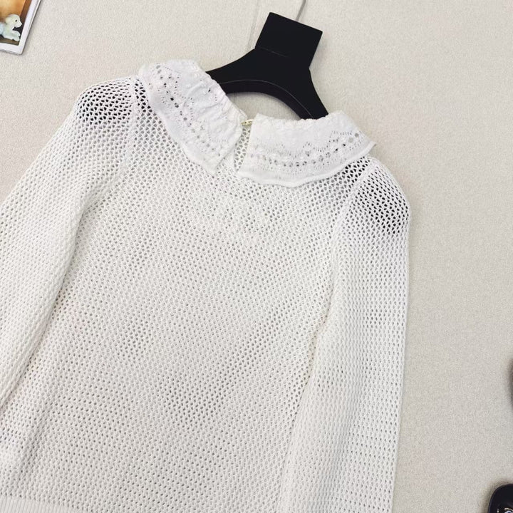 25 Early Spring Ruffle Lace Collar Knit Cardigan