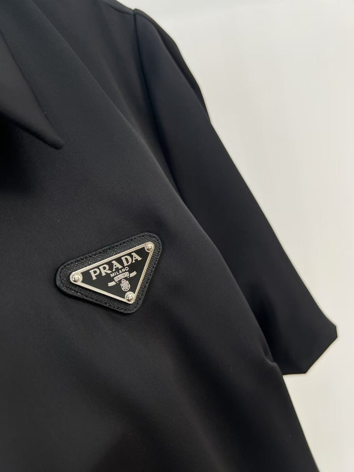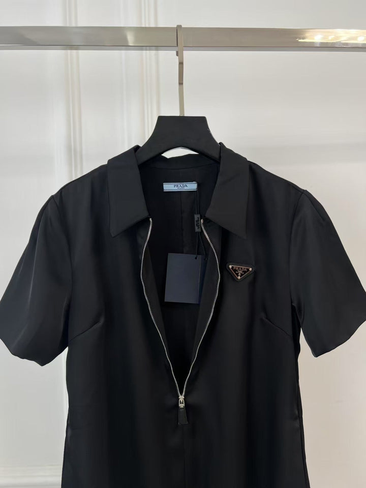 Lapel short-sleeved zipper loose dress Classic triangle logo decoration A very beautiful piece of design The collision of sweet and cool style and elegant Hepburn style This year's latest nylon series can be easily controlled in daily activities