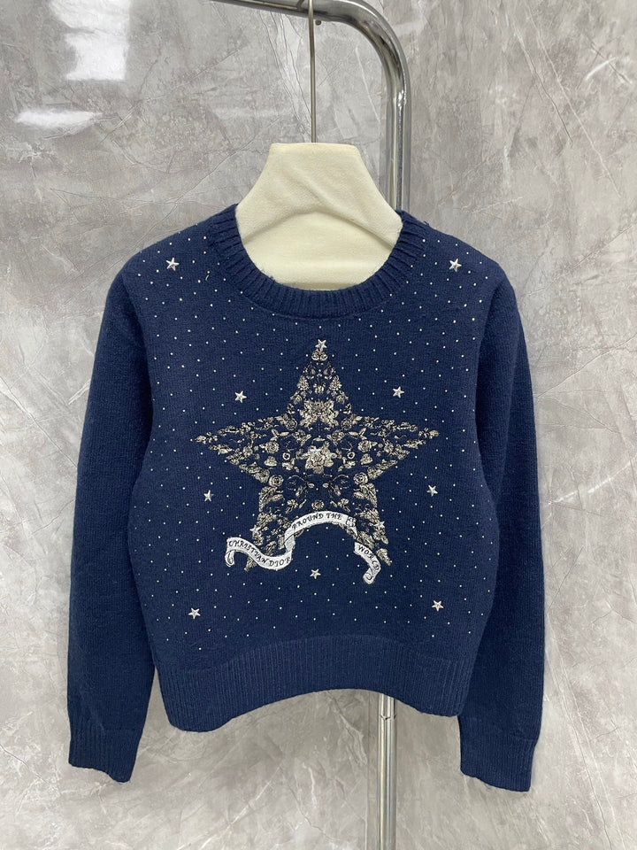 25 new hot diamond starry sky five-pointed star heavy embroidery long sleeves