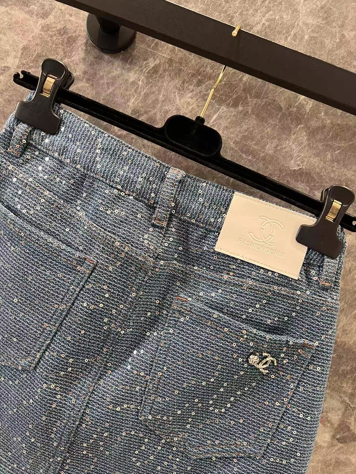 25ss new spring and summer heavy sequined denim skirt | Made of high-end custom fabrics, denim is very comfortable to wear, conventional design, tolerant, and the color adds visual charm, and the texture of the pants will be very delicate, which is a very good fabric. Denim has good hygroscopicity and breathability, the cloth has a soft luster and a very smooth feel, making it everyone's favorite choice