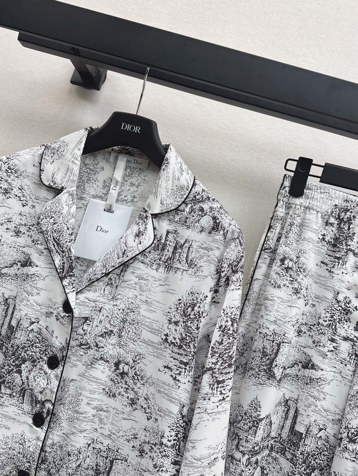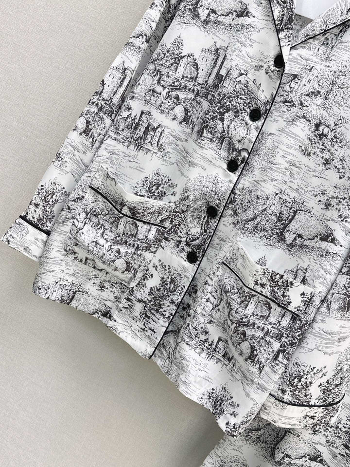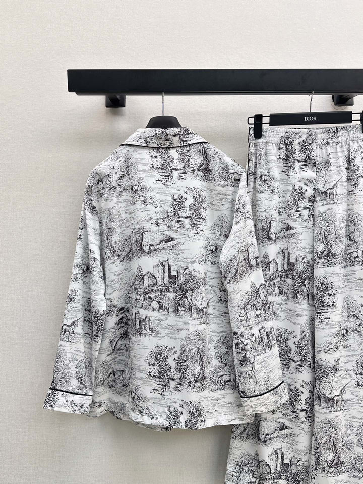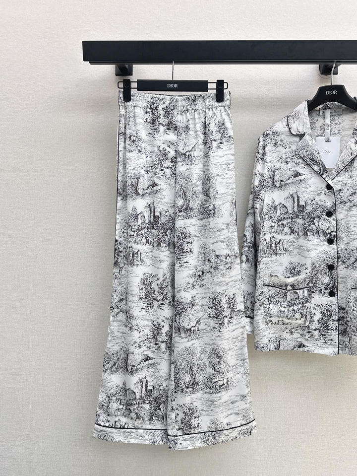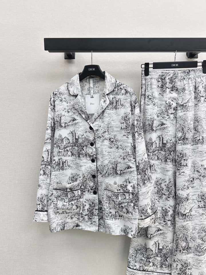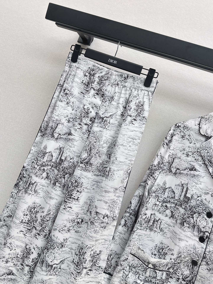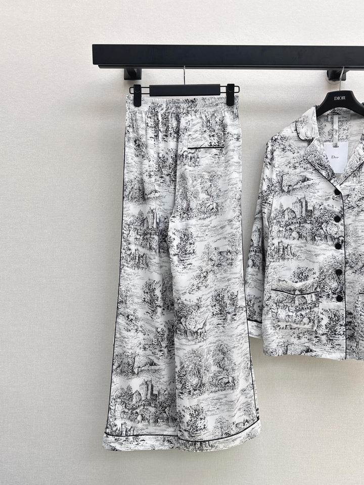 🖤 Temperamental pajama style small lapel shirt + straight trousers Home style light and elegant Matching contrasting colors to outline the elegant temperament Lazy romantic vacation style One set out One color spot sale sml
