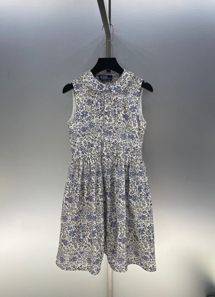 Allover floral pony embroidery Lapel round neck sleeveless dress