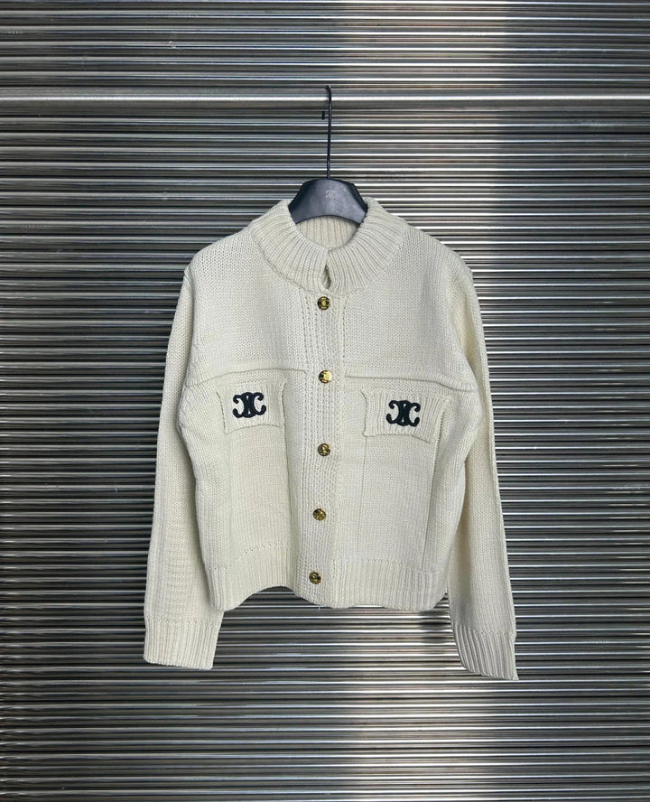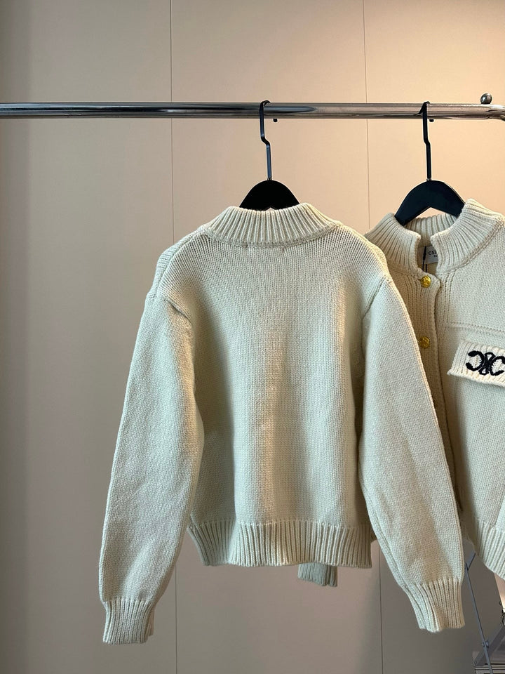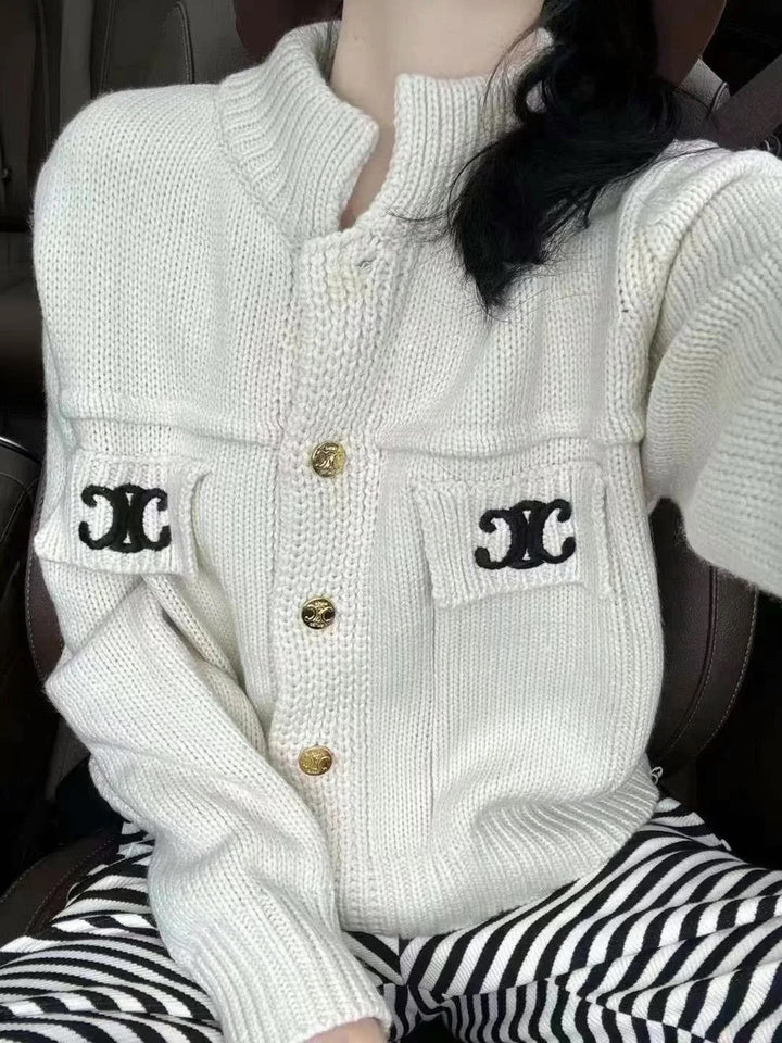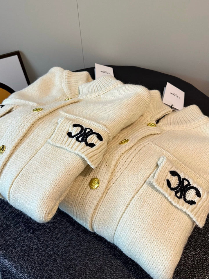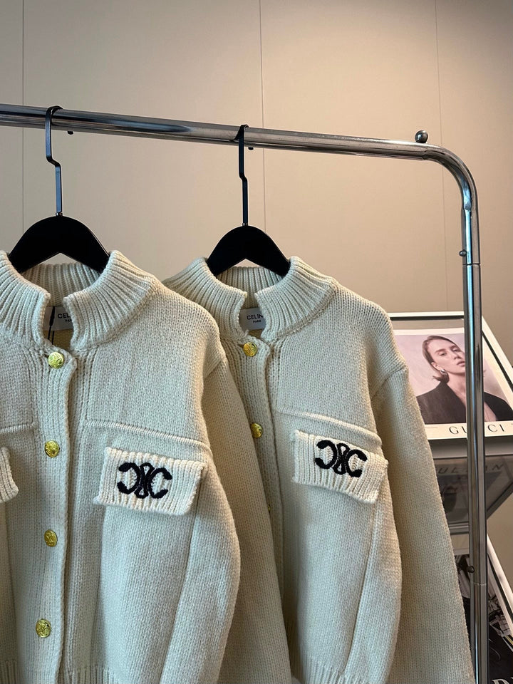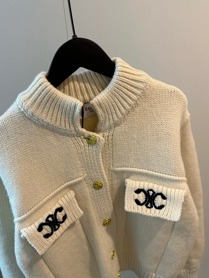 New Arc de Triomphe logo embroidered pocket zippered cropped sweater jacket.