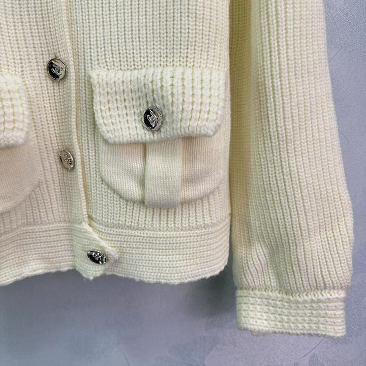 Simple lazy thick-thread knitted cardigan with lapel in autumn and winter. Elegant and big-name brand with a high-end feel. Imported yarn is comfortable and feels great. The classic version has a lazy style and casual atmosphere!