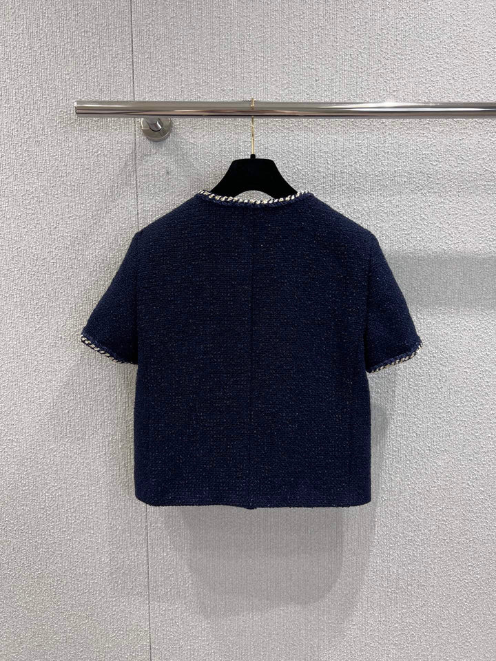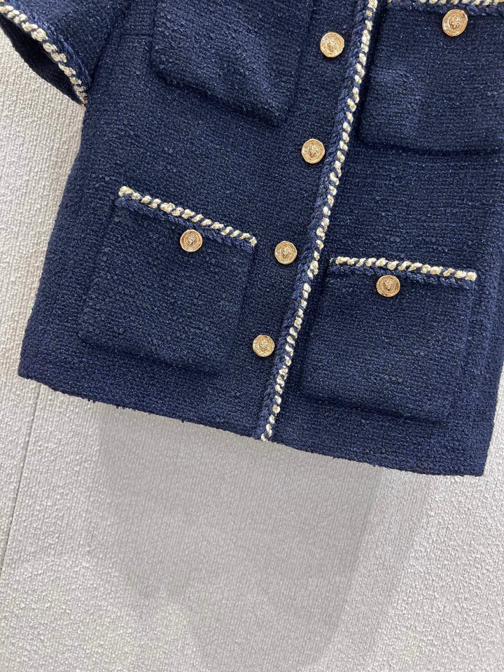 New from the Haute Couture collection, this short-sleeved, twill jacket with banded hems is an exclusive yb development! High-quality, high-quality product! Made from a refined imitation wool with a noticeable, visible wool texture. The twill plaid fabric exudes a sophisticated, ladylike style. The front features a single row of heavily engraved buttons and an exquisitely woven texture. The delicately woven banded hem extends from the neckline to the front, echoing the top edges of the pockets. This design highlights the brand's style, creating a lively yet elegant look. The rich, layered design exudes a sense of style and exudes a sense of style. A stylish and sophisticated choice.