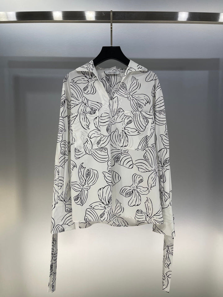 Max Ma* 25 new bow print v-neck long-sleeved shirt! The three-dimensional tailoring is simple and elegant. The loose version is a versatile item with a full sense of luxury.
