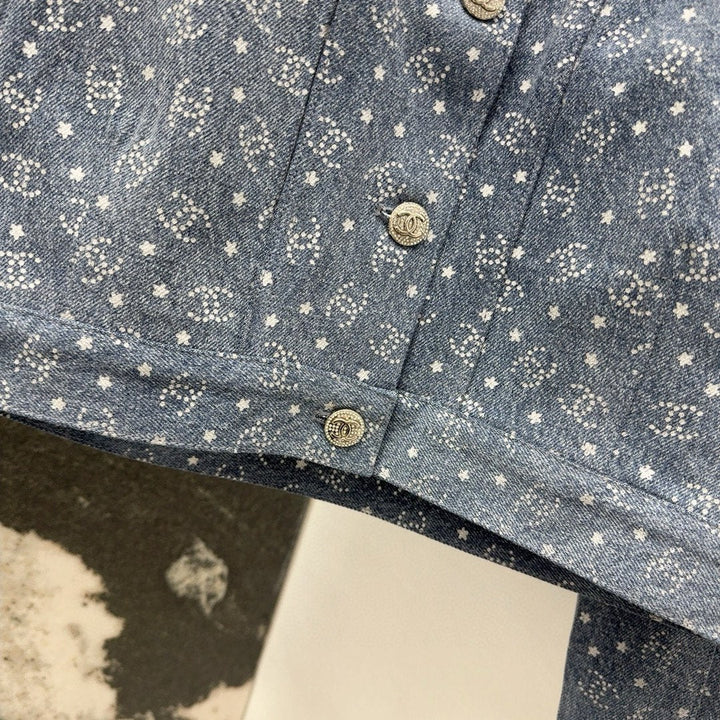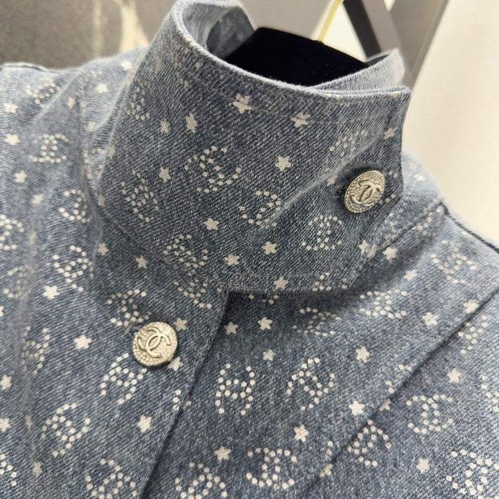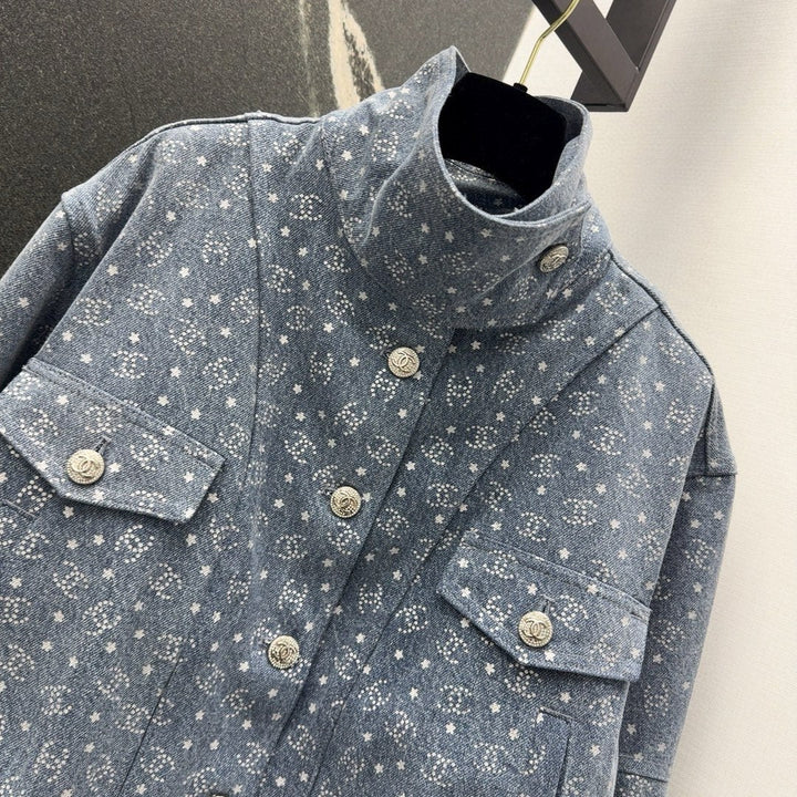 Hot silver craft design Youthful and fashionable feeling Daily matching is very necessary The short version cut makes you look thinner and taller Imported pure cotton denim fabric has an invincible texture Retro and versatile and age-reducing