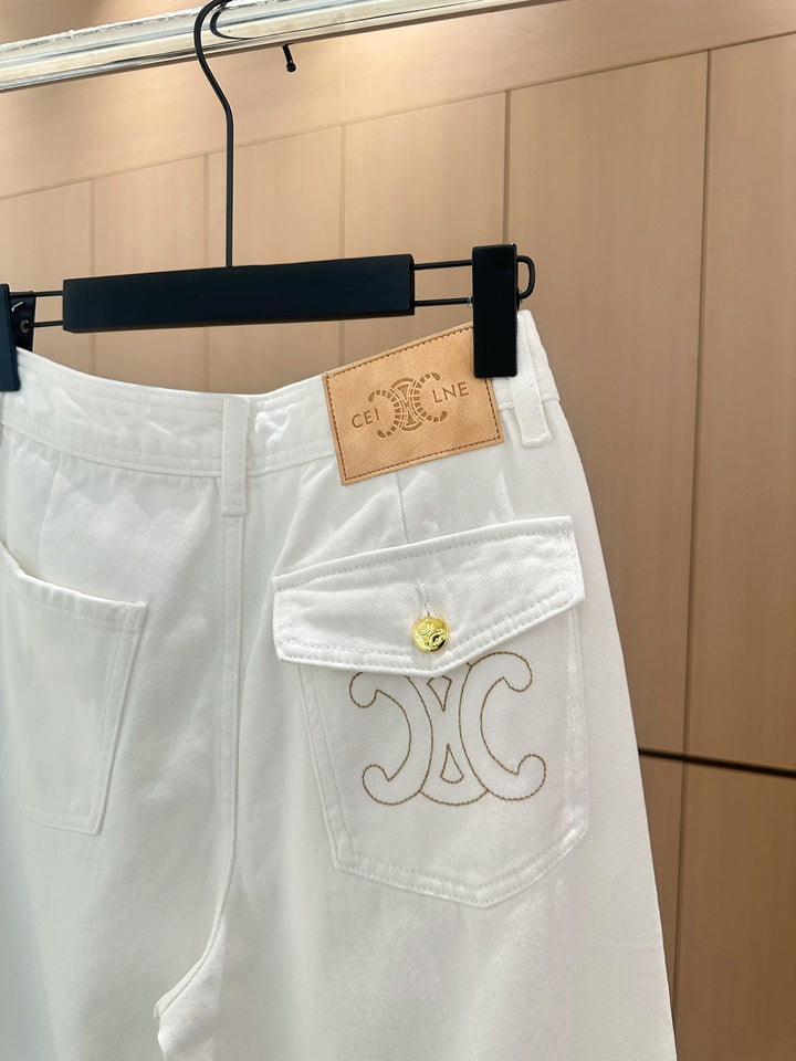 Winter heavy button decoration embroidery high waist wide leg jeans
