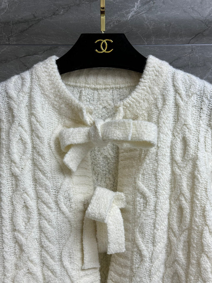 Autumn and winter series Bow tie design Hem logo Logo decoration Exquisite and fashionable age reduction Custom knitted fabric Soft and comfortable skin-friendly short version Slimming and versatile upper body Complete trademarks Size sml