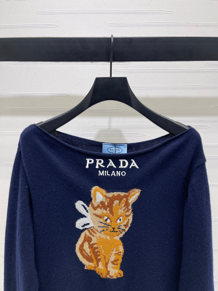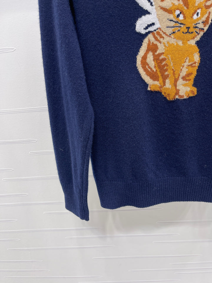The latest collection for early fall 2025! Kitten pattern off-the-shoulder long sleeves! Custom imported wool knit material, breathable and comfortable, full of texture. Loose off-the-shoulder long sleeves cut for a casual and lazy look. Solid royal blue with a kitten pattern on the chest, paired with a letter embroidered logo, adding a touch of elegance and casualness to your outfit. Looks stylish alone or with an inner layer! 2 colors! Sizes S-M-L3! High-quality bulk stock