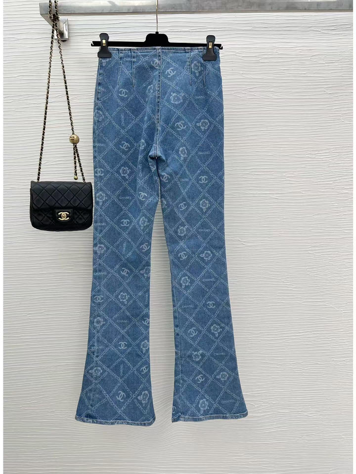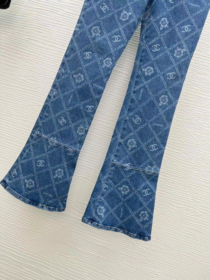 New style printed full-covered flared jeans
