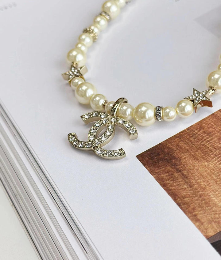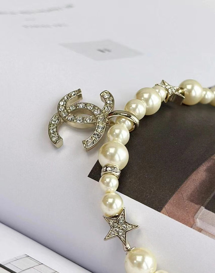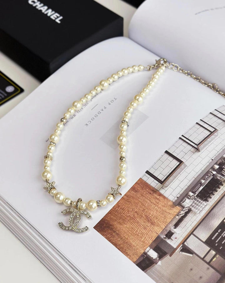 New pearl and diamond logo necklace